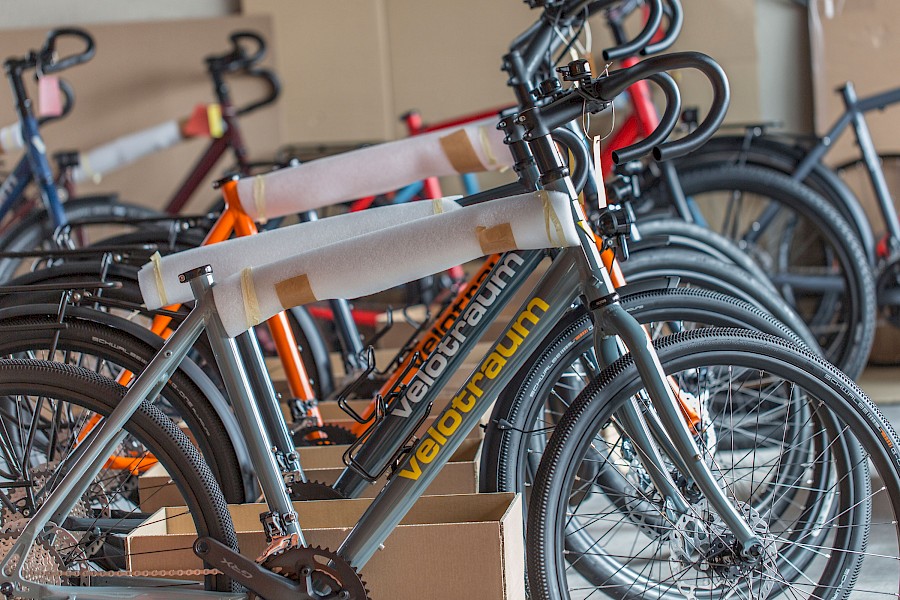 Die Einschränkung »ziemlich« bezieht sich auf den Speedster, respektive die Shimano-GRX-Gruppe sowie den neuen SP400-Rahmen. Bei der GRX-Gruppe ist ein Ende der Engpässe nicht in Sicht, und von Shimano kommen »Meldungen« mit denen man entweder einen Comedy-Wettbewerb gewinnen kann bzw. – wenn man nicht aufpasst – im Burnout landet. Letzteres droht, wenn man weiß, dass zum Beispiel der Container mit GRX-Komponenten am 31. März in Hamburg angekommen ist, aber erst am 13. Mai entladen werden kann und dann nochmals ein bis zwei Wochen vergehen, bis die Teile bei uns eintreffen … Dass wir dennoch Speedster – wenn auch mit Verzögerung – liefern können grenzt an ein Wunder ;-)