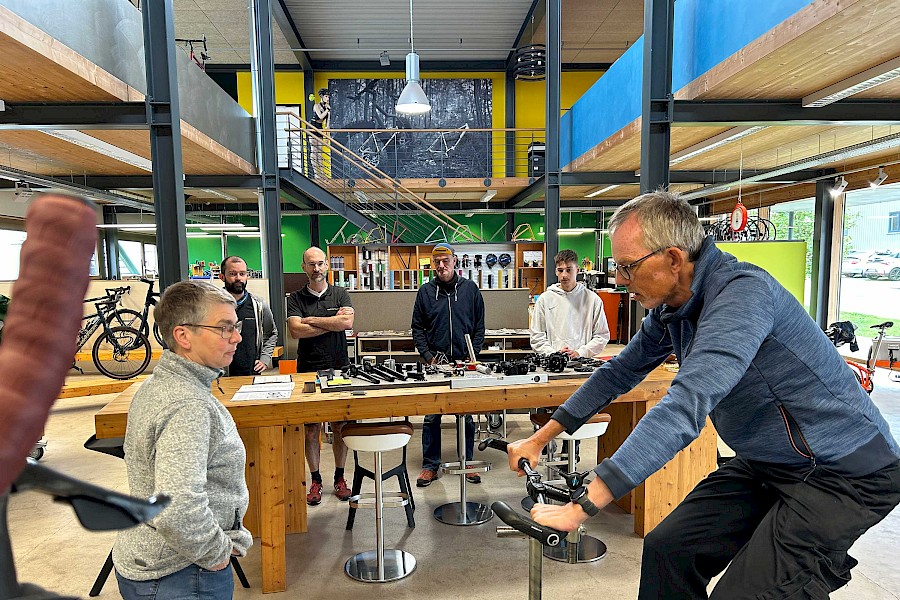 Nachdem Stefan in den letzten Wochen, Monaten und Jahren sein Wissen über Fahrradanpassungen mit dem Velotraum-Team geteilt hat, wurde diese Wissensbasis noch einmal erweitert. Die in der Branche sehr bekannte Juliane Neuss war letzte Woche auf unsere Einladung hin zu einem Workshop in Weil der Stadt. Im theoretischen Teil berichtete Juliane sehr ausführlich über ihre Erkenntnisse aus vielen Jahren Fahrradanpassung. Hier konnten wir viel mitnehmen, auch das Zusammenspiel der Körperpartien bei der ergonomischen Anpassung war lehrreich. Viele Erkenntnisse konnte Juliane durch kleine Fallstudien mit Meisterschülern an der Meisterschule in Frankfurt gewinnen. Im praktischen Teil haben sich alle Team-Mitglieder unter Anleitung von Juliane die passende individuelle Sitzposition erarbeitet. Dabei wurde der ein oder andere auch überrascht und wir haben manche Anregung übernommen.