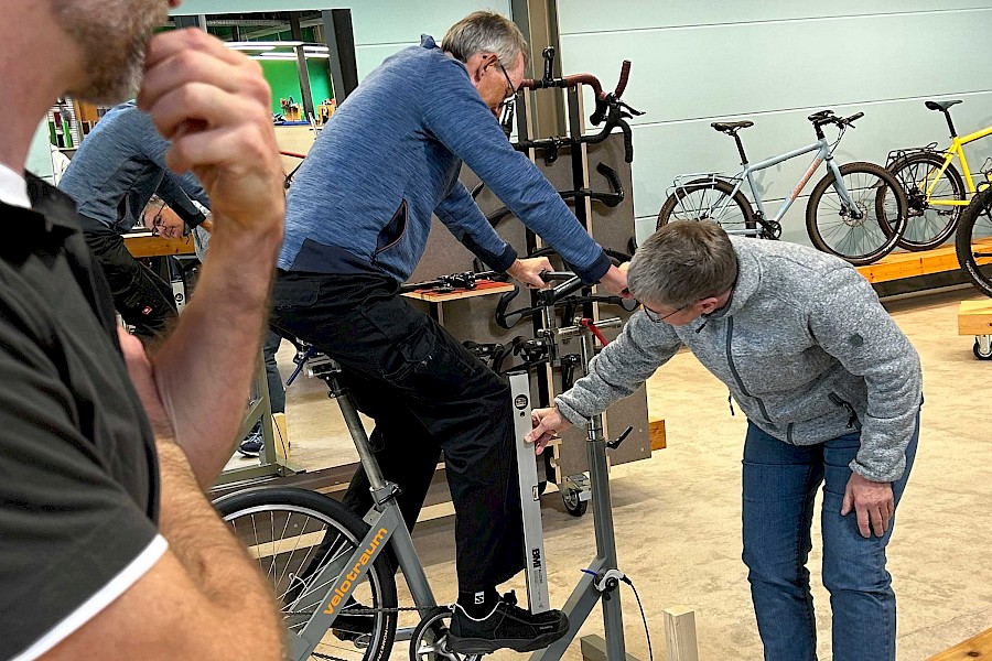 Ein ganz zentrales Element auf dem Weg zum »Fahrrad, das in Größe und Funktion einfach passt« ist die Fahrradanpassung mit der Velotraum-Messmaschine, für die eine kontinuierliche Weiterqualifizierung von großer Bedeutung ist.