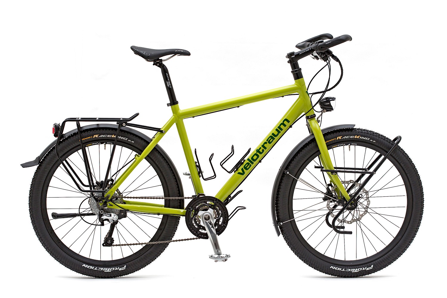 Zusätzliche und interessante Optionen eröffnet die Scheibenbremse hinsichtlich der Laufradgröße und der Felgenwahl. Es können extrabreite Felgen mit einer Maulweite von 30 statt 21 Millimetern verwendet werden. Dadurch kann der Luftdruck auf schlechten Wegstrecken stark reduziert werden (je nach Gewicht und Reifen auf bis zu 1,5 Bar), und Komfort, Traktion und Sicherheit nehmen spürbar zu. Des Weiteren besteht die Möglichkeit, zwischen den Laufradgrößen 26 Zoll und 27,5 Zoll zu wählen, auch mal zu einem späteren Zeitpunkt.