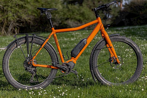 Salopp gesagt eignet sich der »Elektriker« für so ziemlich alles außer für den ausgesprochenen Fernreise- bzw. echten Mountainbike-Einsatz. Das üppige Reifenformat in Verbindung mit der hohen Rahmenstabilität verhelfen dem Elektriker zu wahrhaft souveränen Fahreigenschaften, also ideal für die großen und kleinen Heraus- forderungen und Unwägbarkeiten im urbanen Umfeld sowie beim Pendeln bzw. Reisen über Land. Gemeint sind damit: lose und brüchige Bodenplatten, Schlaglöcher, Bordsteine, Straßenbahnschienen, Kopfsteinpflaster, Baustellen, zerwühlte Forstwege, aufgeweichte Kieswege, Grobschotter, weiche Sandwege usw.