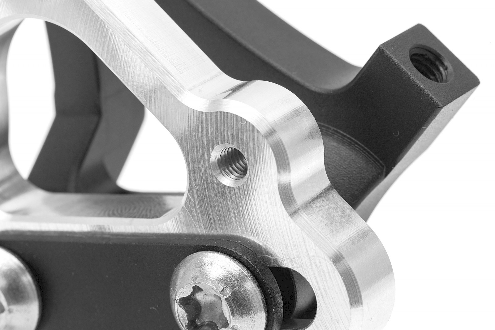 Dieses Erfahrungswissen hilft uns bei der Konstruktion moderner Premium-Rahmen allerdings nur noch bedingt weiter und wir betreten als Hersteller immer wieder konstruktives Neuland. Gemeint ist damit unter anderem: hochspezialisierte Aus- fallenden, raffinierte Verstärkungen, Exzenter-Tretlagergehäuse, trennbare Hinterbauten für den Riemenantrieb, Aufnahmen für das Pinion-Getriebe oder Mittelmotor und Systemgewichte mit bis zu 180 Kilogramm. Ohne aussagekräftige Betriebsfestigkeitsprüfung, welche die Belastungen eines Fahrradlebens im Zeitraffer simuliert, ist für Velotraum eine Produktentwicklung nicht mehr vorstellbar, auch wenn diese Prüfungen zeit- und kostenintensiv sind.