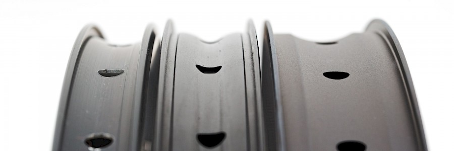 Schon ab 50 Millimeter Reifenbreite (2 Zoll) empfehlen wir eine Felgenhorn-Breite von 25 Millimeter. Leider sind die europäischen Felgenhersteller hinsichtlich der Felgenhorn-Breite nicht differenziert genug aufgestellt. Daher beziehen wir bei »Alex-Rims«, einem der renommiertesten Felgenhersteller Asiens, Felgen in fein abgestuften Maulweiten von 25, 30, 35 und 40 Millimetern.