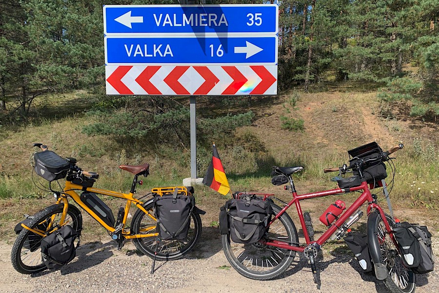 Heute haben wir die Grenze zwischen Estland und Lettland überquert. Unsere Räder werden überall bestaunt (auch wenn sie schmutzig sind) und stehen kurz vor der Vollendung des 10.000 Kilometer.