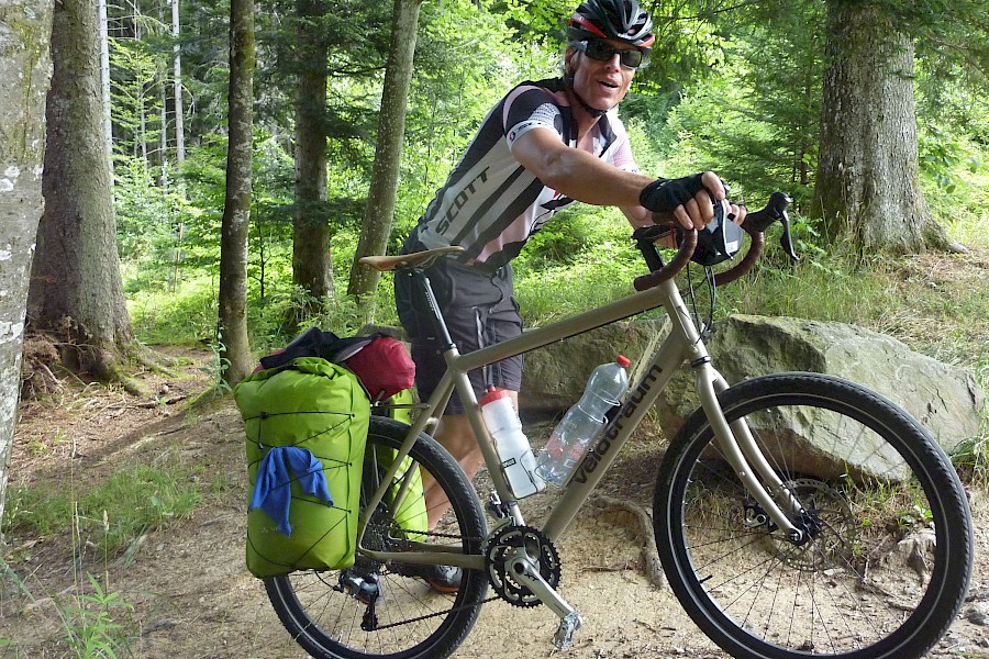 Danke, Peter, ja das stimmt. Und Danke an Chrigi, der mir via PN geschrieben hat, dass es sich genauer gesagt um die “SCHWALBE Hurricane Drahtreifen 26×2.10 Performance RaceGuard Addix” handelte. Verbunden mit dem Hinweis, dass er die Haftung auf Schotter nicht als befriedigend empfand und deshalb für ein Vorhaben wie dieses eher eine gröbere Profilierung empfehlen würde.