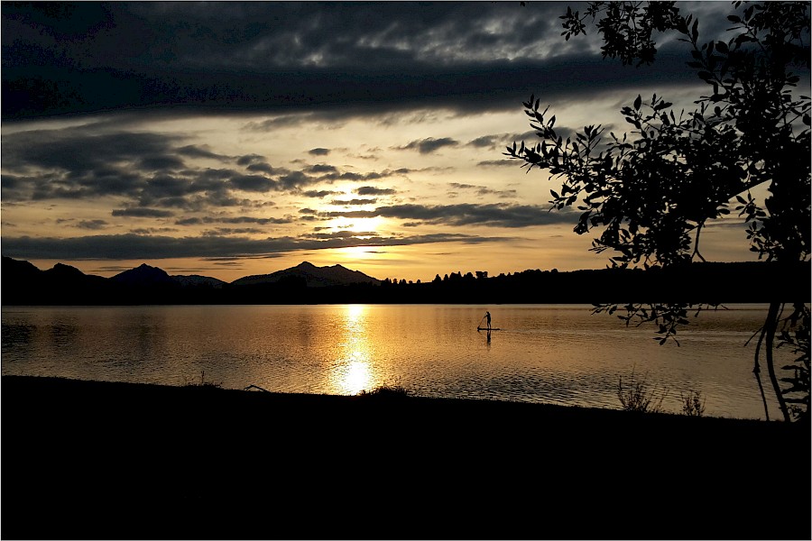 Weiter ging es am nächsten Tag nach Füssen. Landschaftlich sehr schön, aber etwas anstrengend wegen der rolligen Hügel … In der Altstadt von Füssen traf mich fast der Schlag: so voll ist es dort eigentlich nur im Hochsommer! Der Sitzplatz im Eiscafé musste direkt erkämpft werden. Übernachtet habe ich dann auf einem Campingplatz mit Sicht auf Neuschwanstein. Am dritten Tag folgte eine Flachetappe über das Unterallgäu bis kurz vor Günzburg. Es war ein gemütliches Fahren, zwischendurch sogar auf einer alten Bahntrasse. Sehr entspannt. Wiederum zeltete ich auf einem Campingplatz.