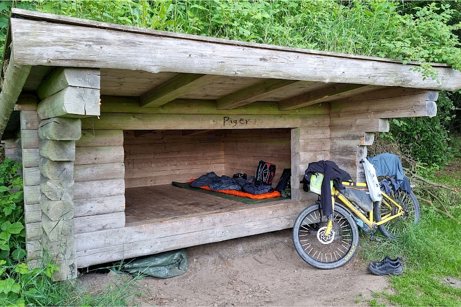 Zur Übernachtung benützte ich mein Zelt (Wildcamping oder Campingplatz). In Dänemark übernachtete ich auch in Schutzhütten, die ich mit der entsprechenden App aufgefunden hatte. Mein Speedster SP3 hat die Tour erwartungsgemäß bravourös gemeistert. Pannen waren keine zu verzeichnen. Das Tretlager allerdings ist ausgeschlagen und wird repariert werden müssen. Die Aussicht auf Softeis weckte halt doch manchmal Bärenkräfte …