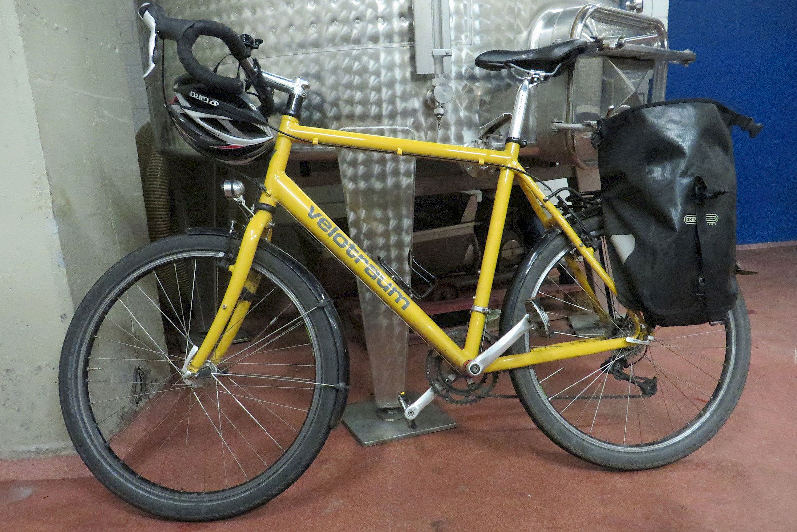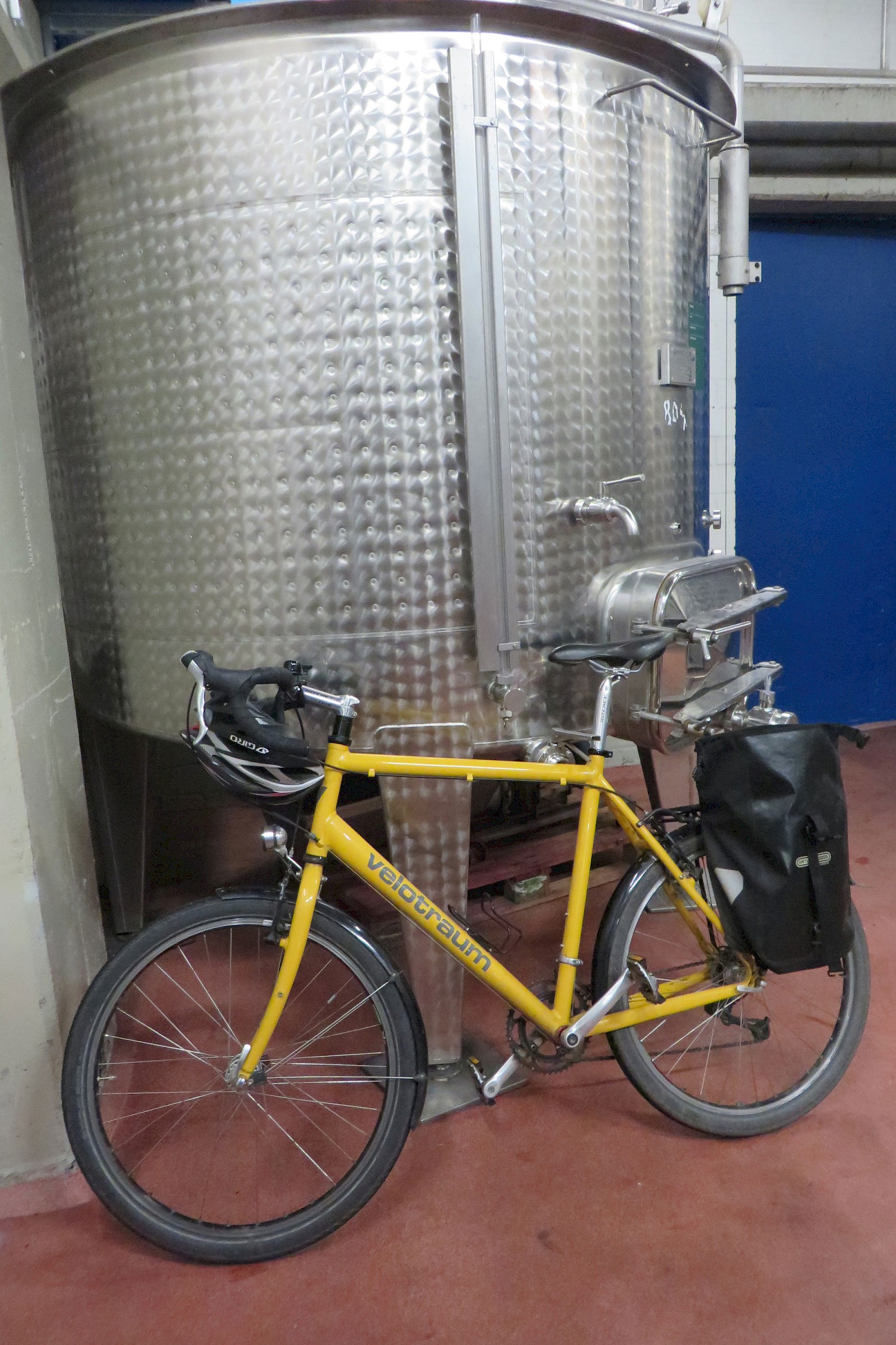 Die Schaltzugführung unter Tretlager war nach 10 Jahren gebrochen. Jetzt läuft die Schaltung wieder wie Butter und so kann ich meinen Arbeitsweg wieder radeln. Mein Park- und Arbeitsplatz unter der Woche ist das Kelterhaus der Winzergenossenschaft in Ungstein in der Pfalz ;-)