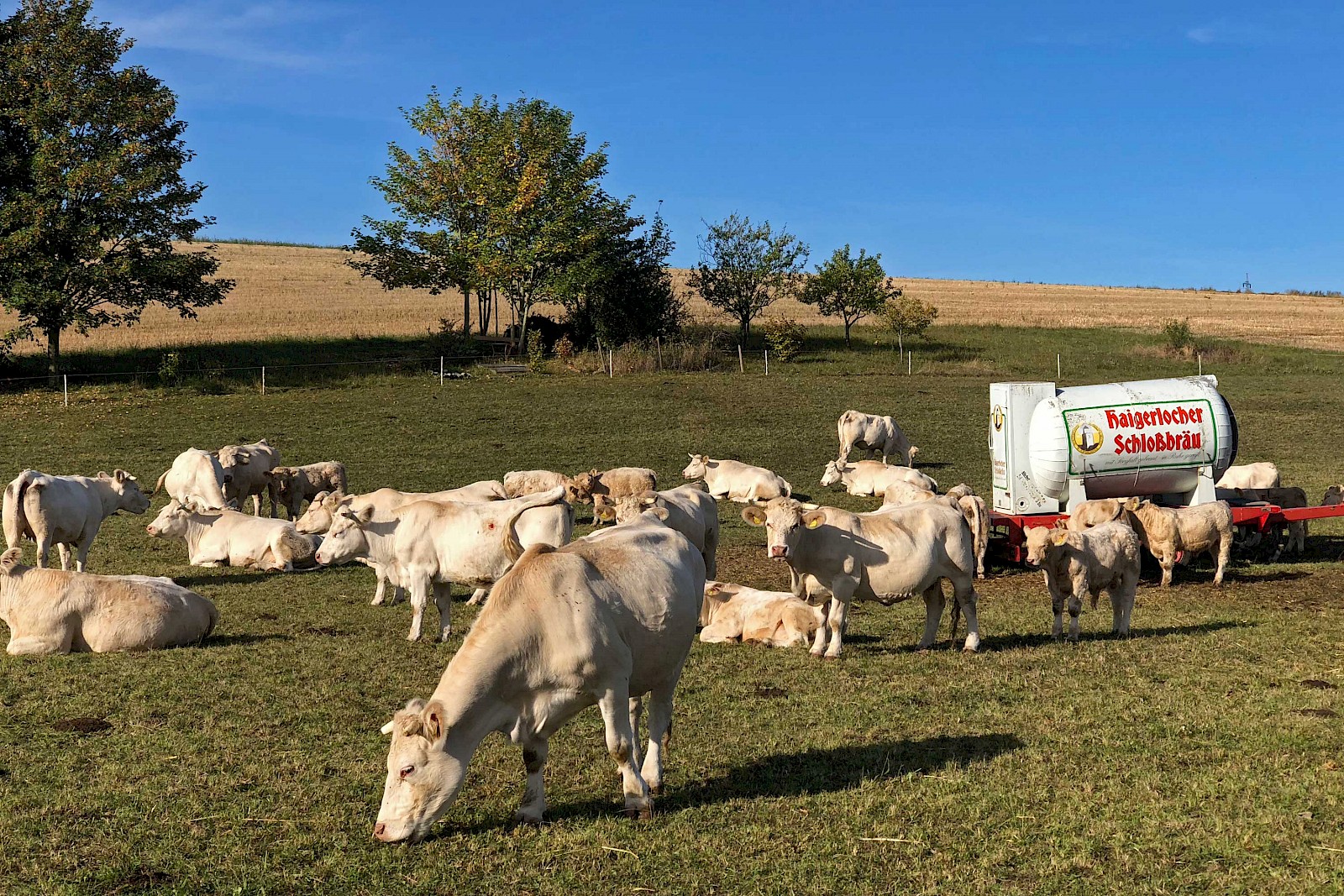 »Glückliche Kühe» auf einer – in diesem Sommer – vergleichsweise grünen Weide und wenn das Grünzeug zu trocken wird, genehmigen sich die Viecher einen Schluck Haigerlocher Schloßbräu ;-)