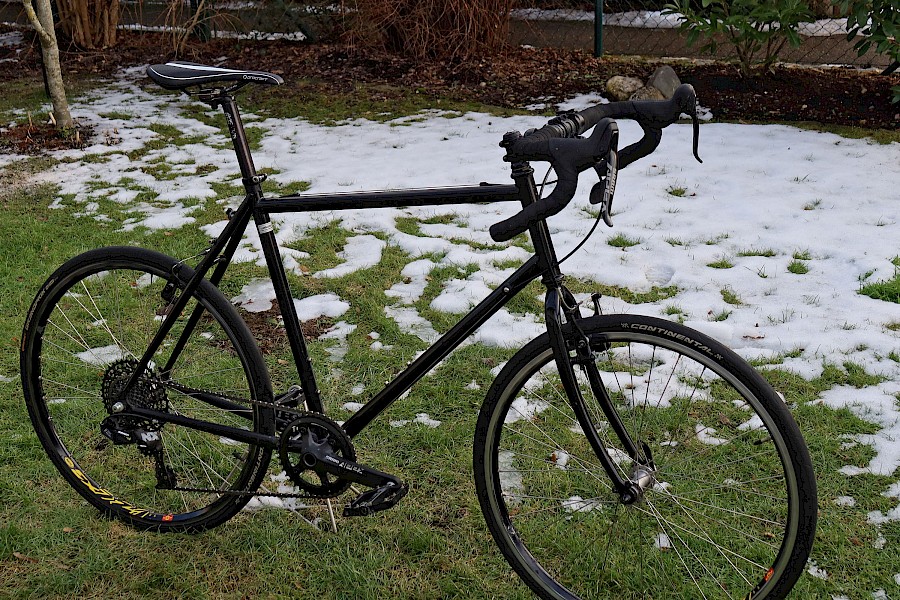 Als begeisterter Mountainbiker habe ich mich dann aber doch auch hier für einen geraden Lenker entschieden. Keine 27 Jahre später haben mein Sohn und ich in einem Winterprojekt das alte Rad im »Gravel-Gewand« für ihn neu aufgebaut. Den Firmenaufkleber mit noch 4-stelliger Postleitzahl haben wir natürlich noch dran gelassen. So ein bisschen bereue ich mein Entscheidung von damals jetzt schon. Um ein Haar wäre ich dem Zeitgeist mal voraus gewesen …