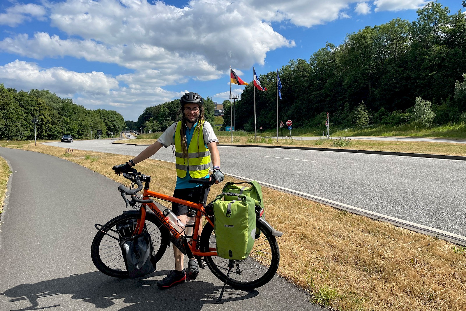 Bereits ungefähr 500 Meter hinter der dänisch-deutschen Grenze wurde die Radinfrastruktur schlechter – willkommen in Deutschland! (Wobei ich der Ehrlichkeit halber zugeben muss, dass sie auch in Norddeutschland meines Erachtens nach noch recht im Rahmen war.) Ungewohnt war auch, dass ich plötzlich wieder mit anderen Menschen deutsch reden konnte, nachdem ich ja am letzten Dänemark-Tag nicht alleine gefahren bin und deshalb den ganzen Tag nur englisch geredet habe.