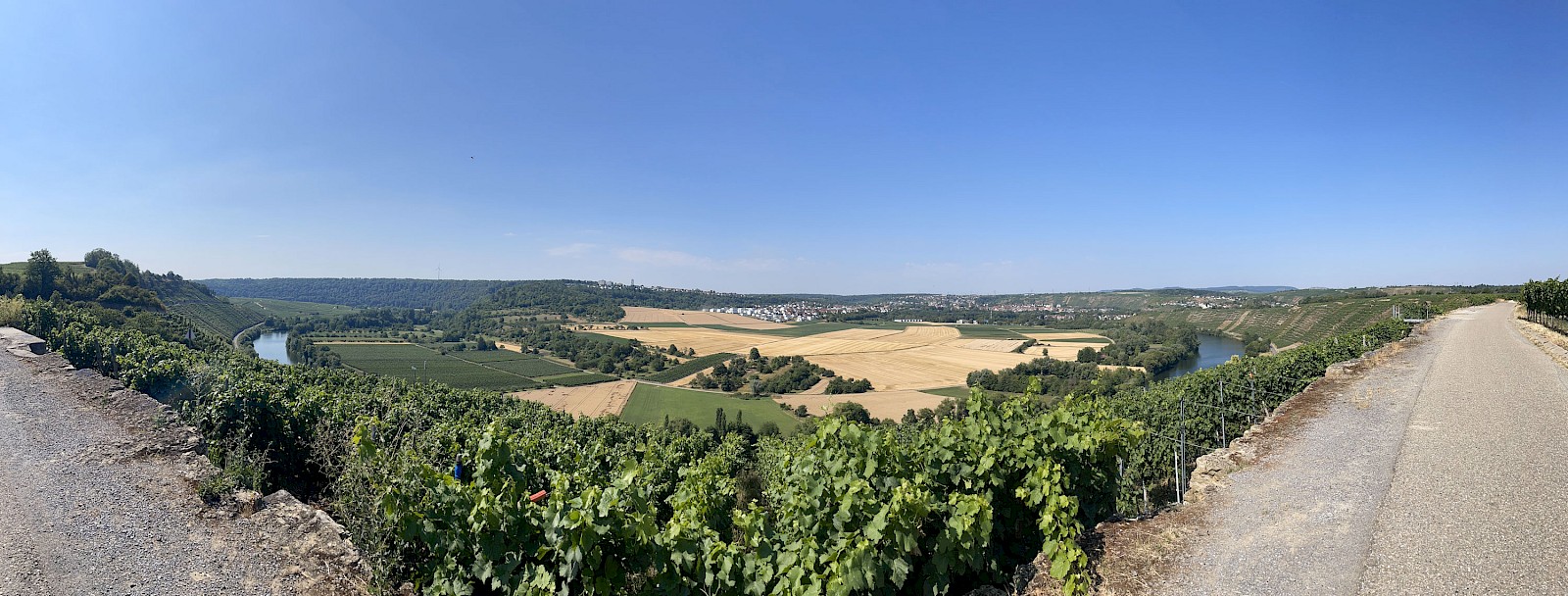 Ab Mannheim ging es für mich über Heidelberg und Heilbronn weiter am Neckar entlang. Die Mündung des Neckars in den Rhein lohnt sich übrigens nicht – optisch nicht aufbereitet und auf einer Rhein-Seite finden sich viele viele Industrieanlagen. Doch abgesehen davon war auch die Strecke am Neckar entlang sehr schön. Zwischendurch ging es bspw. auch mal auf einen Weinberg hoch, wofür ich jedoch mit einem sehr schönen Blick auf einen Neckarbogen und eine genauso angenehme Abfahrt belohnt wurde. Bei Stuttgart-Rot bin ich dann abgebogen in Richtung Westen, von wo aus es noch eine km heimwärts ging – das ging dann aufgrund meiner Wegkenntnis bereits wie im Schlaf ;-)
