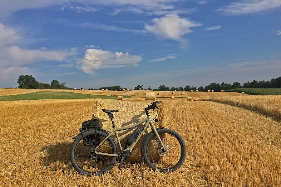 Tief ein- und ausatmen … riecht das gut … ist das schön hier … oh, Strohrundballen … jetzt schon … Mitte Juli … Klimawandel? … nicht so viel denken … abschalten … weiterträumen und genießen … will nicht ankommen … weiterfahren … ach, nee, schon wieder Zeit verbummelt … wollte doch früher am Schreibtisch sitzen … andere haben jetzt Urlaub … immerhin habe ich ein bisschen Urlaub jeden Tag … und schon bin ich da … schade … heute Abend darf ich wieder … nochmal ein bisschen Urlaub.