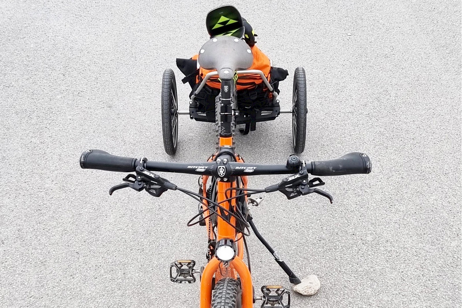 „Wir selbst nutzen Fahrradanhänger ja für alle erdenklichen Transportaufgaben – eigentlich überall, wo wir keine Lust auf Schlepperei haben. Nun durften wir für einen ambitionierten Bergsteiger einen Tourenanhänger bauen, mit dem fast alles möglich ist. Zu Fuß gehen, wandern, Hüttentransporte, Skitransporte am Fahrrad oder zu Fuß und last but not least einfach einkaufen mit dem Trolley. Dass der leichtgewichtige Anhänger auch als flacher Plattformanhänger umfunktioniert werden kann, versteht sich von selbst. Und damit kann er dann auch fast alles transportieren, was andere Anhänger auch können. Schlichtweg die ideale, vielseitige und einzigartige Lösung für outdoorbegeisterte Fahrradfans.“