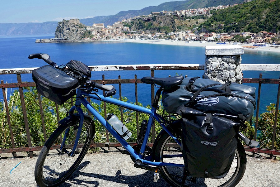 Das Foto ist entstanden an der Küste bei Scilla (Kalabrien). Jetzt geht es weiter nach Sizilien. Von meinem Velotraum bin ich begeistert!