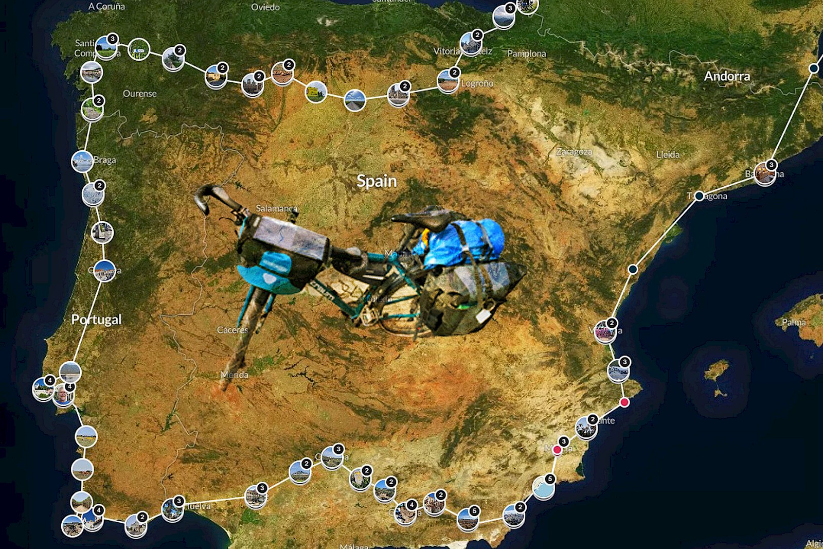 Natürlich ging es nicht zuhause los, sondern (nach Transfer mit Flixbus und Zug) in Valencia. Es ging zunächst die Mittelmeerküste entlang, um dann über die Sierra Nevada zu den Highlights Andalusiens abzubiegen. Zurück am Mittelmeer ging es die Algarveküste bis an die westliche Spitze Portugals. Über Lissabon, Sintra, Coimbra und Porto erreichte ich Santiago de Compostella weitgehend auf dem »camino portugues«, einem der vielen Jakobswege. Den bekannteren »camino frances« fuhr ich entgegen der Pilgerströme über Leon und Burgos nach San Sebastian und über die französische Grenze. Dort wurde ich dann abgeholt.