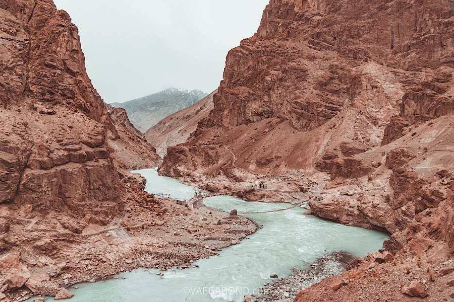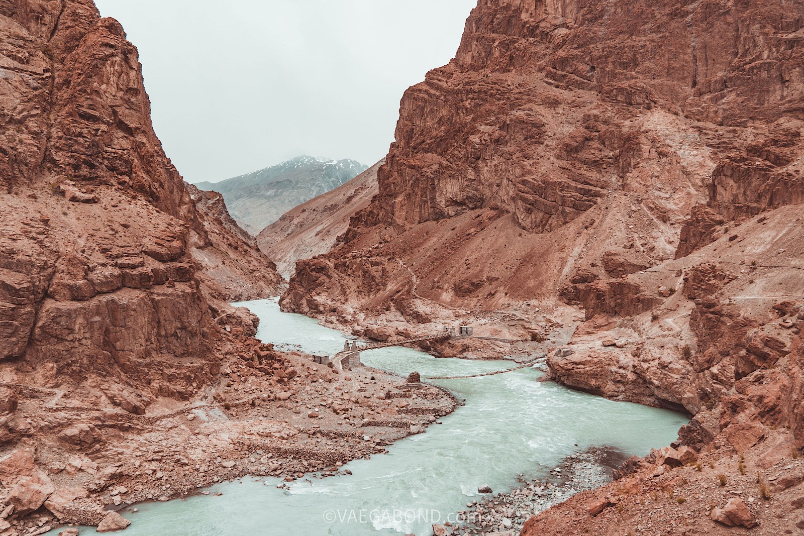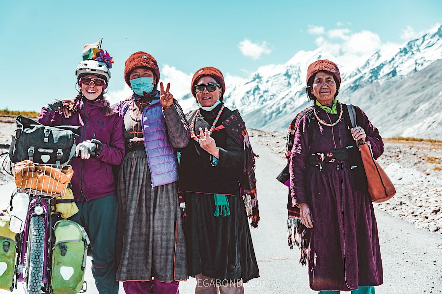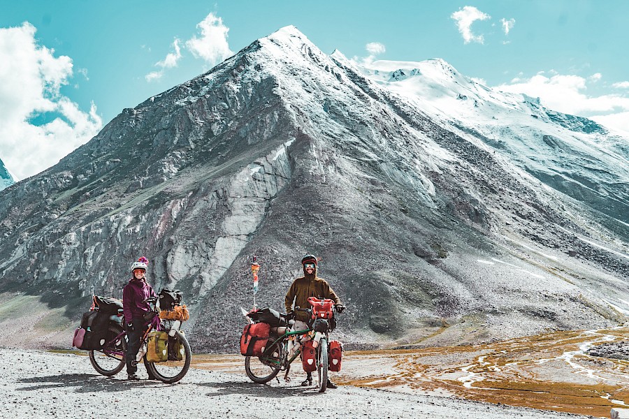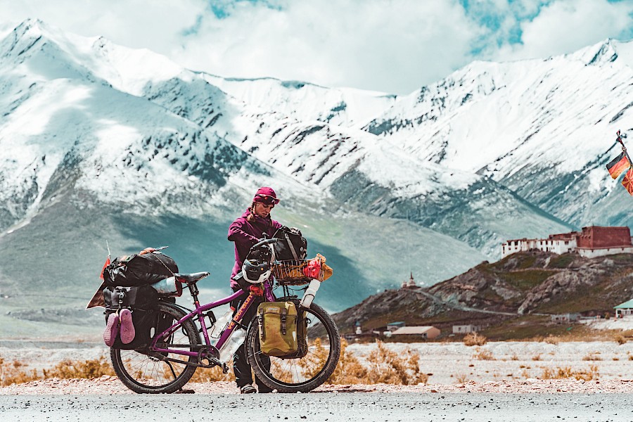 Hat uns das Spiti Valley schon beeindruckt, war das Tal Zanskar in Ladakh das Sahnehäubchen auf der Torte. Ladakh gehört zu den höchsten bewohnten Regionen der Welt. Das Hochplateau liegt im Durchschnitt auf einer Höhe von über 3.000m. Okay, wir müssen schon zugeben, die vielen Offroad Passagen mit den teilweise überschwemmten Straßen bzw. Pfaden, waren schon nicht ganz ohne. Wir haben aufgehört zu zählen, so oft mussten wir die Hosen hochkrempeln und unsere Rädern durch wadenhohes, eisig kaltes Gletscherwasser schieben. Immerhin ging es auch zwischendrin ordentlich bergauf und über Pässe jenseits der 5.000m mit Regen und Schnee. Und ja, seien wir ehrlich, es kamen auch mal Gedanken, wie »ich hab Hunger, mir ist kalt, ich hab keinen Bock mehr auf Berge. Ich will am Strand liegen mit einer Kokosnuss in der Hand …« Denn irgendwann waren wir an dem Punkt, wo wir einfach keine Geröllstraße mehr sehen wollten und unsere 60 bis 75kg schweren Fahrräder keinen Meter mehr bergauf bewegen wollten. Aber rückblickend hat es sich mehr als gelohnt! Das tut es eigentlich immer, egal wie schlimm die Strecke war. Bisher haben wir immer sehr viel positives aus allem gezogen!