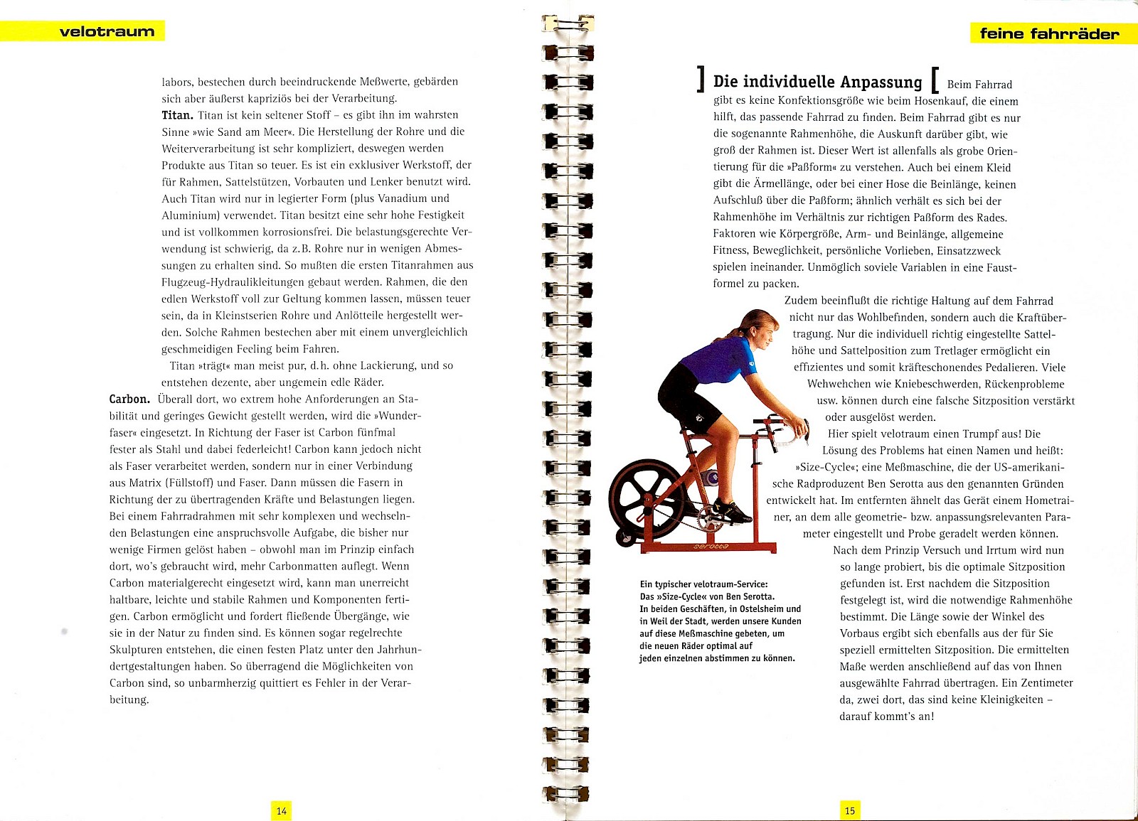 Authentizität oder »wie der Herr, so sein Gescherr« – meine mannigfaltigen Aufgaben bei Velotraum waren Marken- und Produktentwicklung, Beratung und Verkauf, Disposition, Inhalte der Website, Fotografie und gedruckte Broschüren. Dabei habe ich mich immer als kreativen Handwerker mit Bodenhaftung verstanden, dem Verallgemeinerungen, Superlative und Perfektionsversprechen immer suspekt waren. Als pragmatischer Produkt- und Markendesigner ging es mir immer um » Wirksamkeit« und darum, »gute Dinge um ihrer selbst willen besser zu machen«. Dass ich diese Geisteshaltung leben und mit dem Portfolio von Velotraum umsetzen durfte, war ein großes, wenn auch forderndes Privileg. Als »Chronist« hatte ich zudem ein Höchstmaß an inhaltlicher Beinfreiheit und Kompetenz, um auf der Velotraum-Website eine besondere Mischung aus Schöngeistigem, Fundiertem und Authentischem aus erster Hand anbieten zu können. Eine einmalige Konstellation, die für alle Velotraum-Freunde und -Kunden sicher ihren ganz besonderen Reiz hatte. Als Quereinsteiger eine so umfassende und erfüllende Tätigkeit ausüben zu können, habe ich daher immer als glückliche Fügung empfunden.