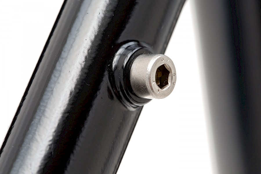 Die möglichen Laufradgrößen sind 26 und 27,5 Zoll, und als Bremse stehen ausschließlich Scheibenbremsen zur Wahl. Der Rahmen hat alle Voraussetzungen, um Schutzbleche und Gepäckträger vorne wie hinten zu montieren. Unscheinbar und von elementarer Bedeutung sind dafür die optimal platzierten Gewinde und Querstege.