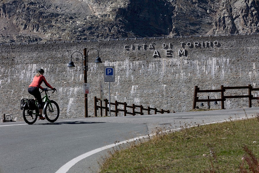 Nachdem am Anfang des Urlaubs ein Felgenbruch die ersten Gipfelstürmerträume vereitelte, besuchten wir auch dem Heimweg nochmals den Gran-Paradiso-Nationalpark und landeten auf dem Campingplatz von Ceresole Reale im Valle dell’ Orco. Die Ecke ist eigentlich ein Kletter- und Wanderparadies, aber es gibt auch eine schmale Passtraße (und Sackgasse) hinauf zum 2.600 Meter hoch gelegenen Colle del Nivolet. Mit ein paar Zwischenanstiegen sind das hin und zurück etwas über 1.400 Höhenmeter auf 40 Kilometer Strecke. Mit unseren 504-Wattstunden-Akkus könnte das allerdings knapp werden. Davon abgesehen waren wir beide sehr gespannt, wie sich richtiges »Pässefahren« mit einem Pedelec anfühlen wird, und vor allem, ob wir das überhaupt schaffen …