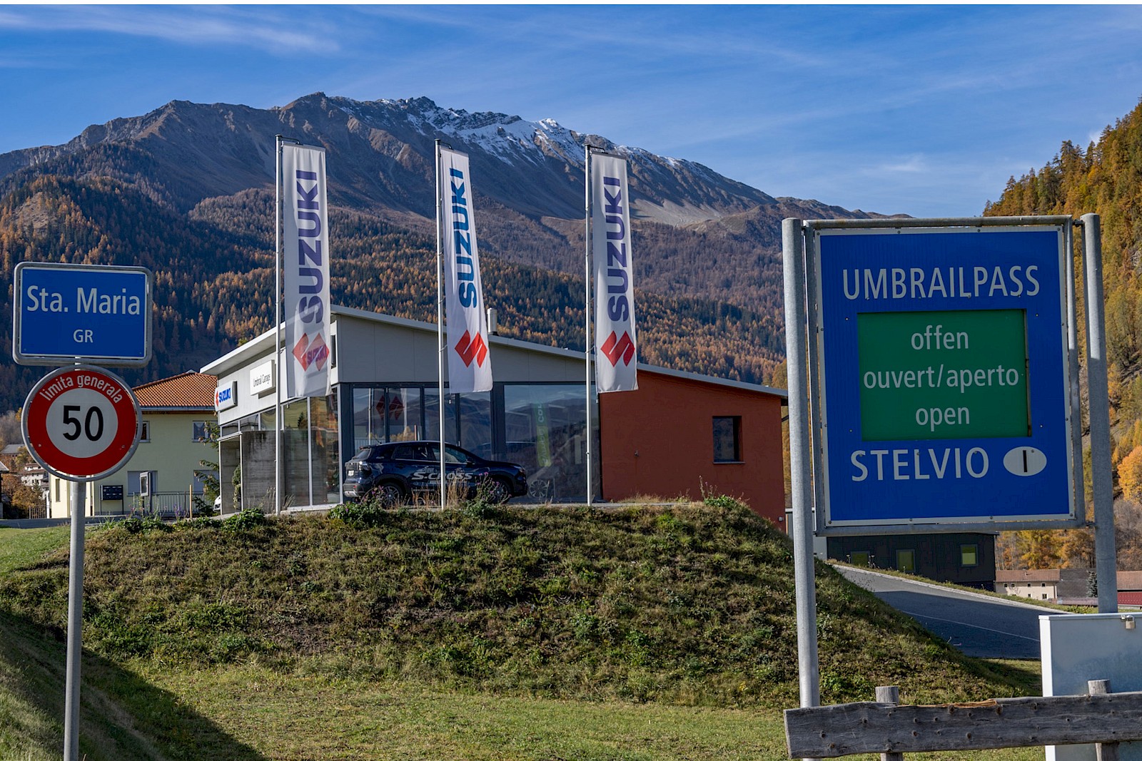 Von Mals ging es über die wunderschönen Orte Laatsch und Müstair bis nach Santa Maria, wo die schmale Passstraße direkt im Ort beginnt und sogleich steil nach oben führt. Bis Santa Maria (1400 Meter) hatte ich bereits über 600 Höhenmeter in den Beinen, und nun sollte es erst richtig losgehen. Eine gemütliche Pause bei etwas über Null scheidet aus, also reduzierte ich meine Bekleidungsschichten auf das Notwenigste und machte mich an den Anstieg.
