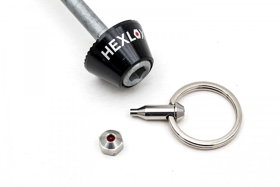 - Hexlox-Schraubensicherung – Aus Berlin stammt dieses ebenso smarte wie geniale Sicherungssystem für Inbus-Schrauben der unterschiedlichsten Größen. So charmant wir das System finden, für Velotraum scheint es uns nicht passend. Zu winzig-filigran sind uns die Einzelteile, aber vor allem müssten wir an den dafür geeigneten Stellen (Vorbau, Sattelstütze, Sattelklemme, Beleuchtung …), korrosionsfeste Edelstahlschrauben gegen Stahlschrauben tauschen.