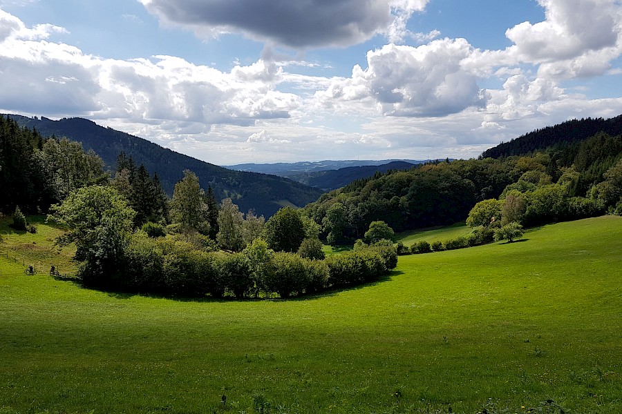Eine Kaltfront verzögerte unseren Start ein wenig, dafür waren die Temperaturen zum Radfahren angenehm. Besonders die Wolken die uns die zweieinhalb Tage begleiteten, sorgten für hübsche Bilder. Den Anfang der Stecke kennen wir natürlich schon, die Bereiche im Nordschwarzwald weniger. Trotz Corona war am Naturparkzentrum und der Eiszeitpfütze Mummelsee doch ziemlich viel los. Ganz ehrlich da fallen mir schönere Orte im Schwarzwald ein, aber dort gibt es halt auch keine Busparkplätze direkt am See.