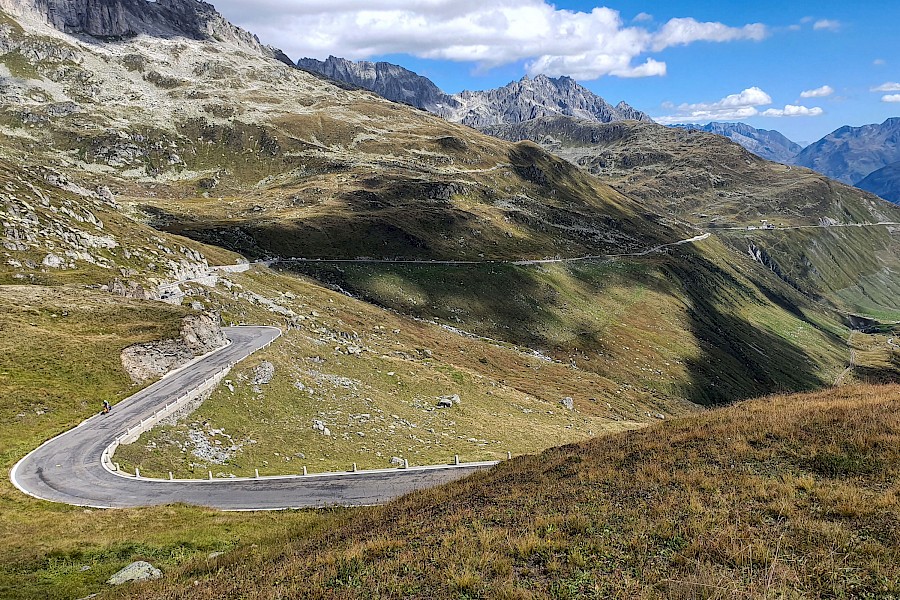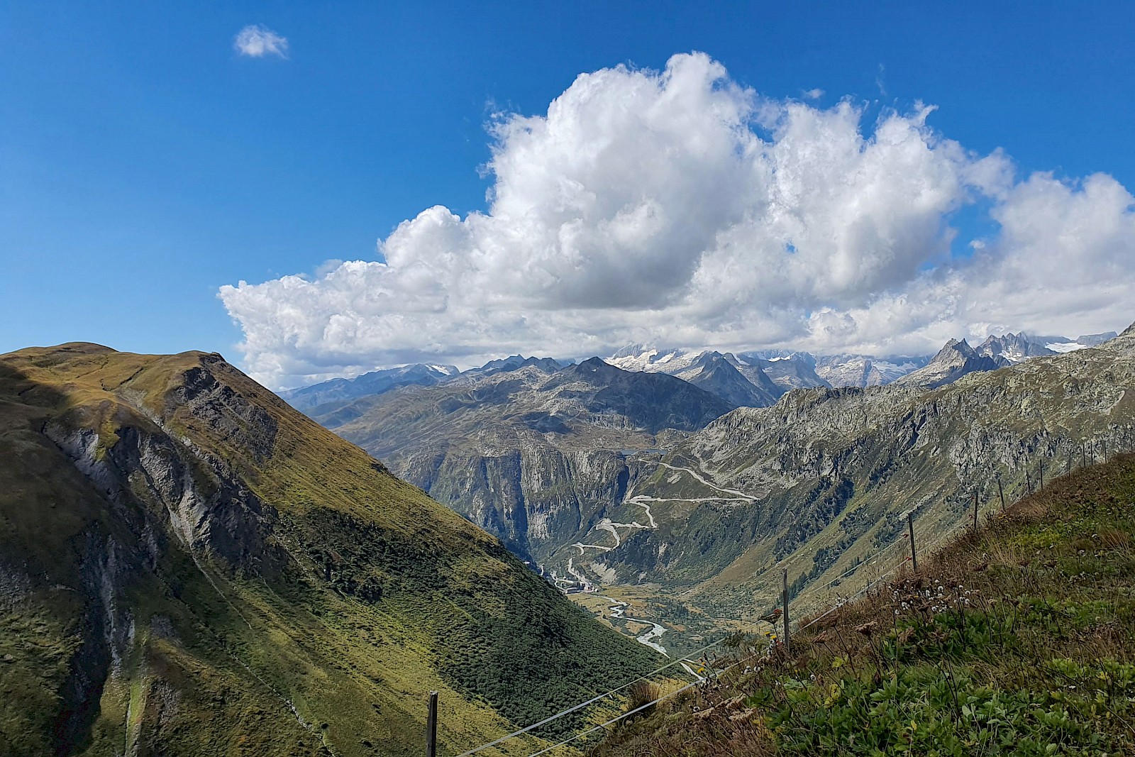 So sind wir erst anfang September, nach ein paar richtig verregneten Tagen, in die Schweiz gestartet. Das war die richtige Entscheidung und der Campingplatzbesitzer am Zuger See, der ersten Übernachtung, meinte es wäre der erste Tag an dem der Platz nicht ausgebucht sei. Für den zweiten Campingplatz beim Vierwaldstätter See galt das schon nicht mehr, immerhin konnten wir 2 Nächte bleiben. Es gab dieses Mal wirklich keine geplanten Routen, jeden Abend wurde entschieden wie es weiter gehen soll. Auch wenn mit der Entscheidung nach Andermatt zu fahren, doch eine gewisse Vorentscheidung wie es weitergehen würde gefallen ist. Wieder einmal sind wir auf der Gotthartstraße unterwegs. Da es vor dem Gottharttunnel einen langen Stau gab, war etwas mehr Verkehr, kommt leider immer öfter vor. Ich liebe diese Gegend, dieses gewaltige Tal ist einfach beeindruckend. Besonders schön der letzte Abschnitt durch die Schöllenenschlucht von Göschenen nach Andermatt. Sehr gelungen ist der erst letztes Jahr fertiggestellte Radweg durch die Schlucht.