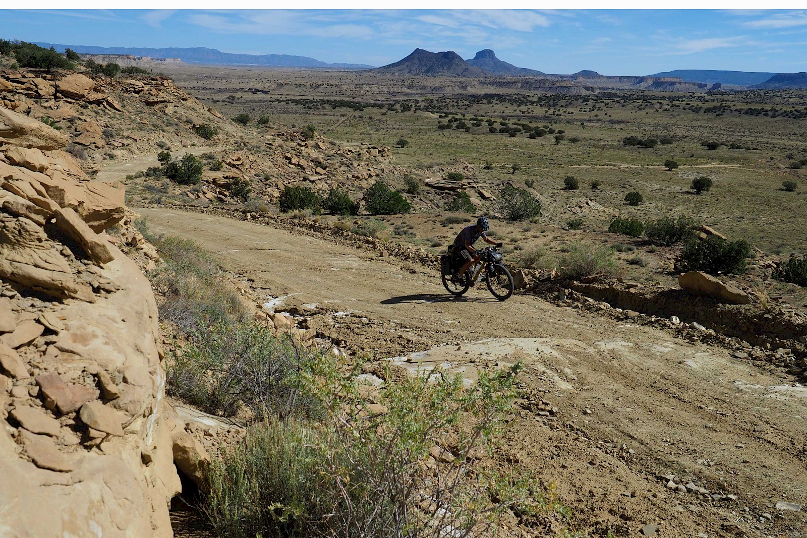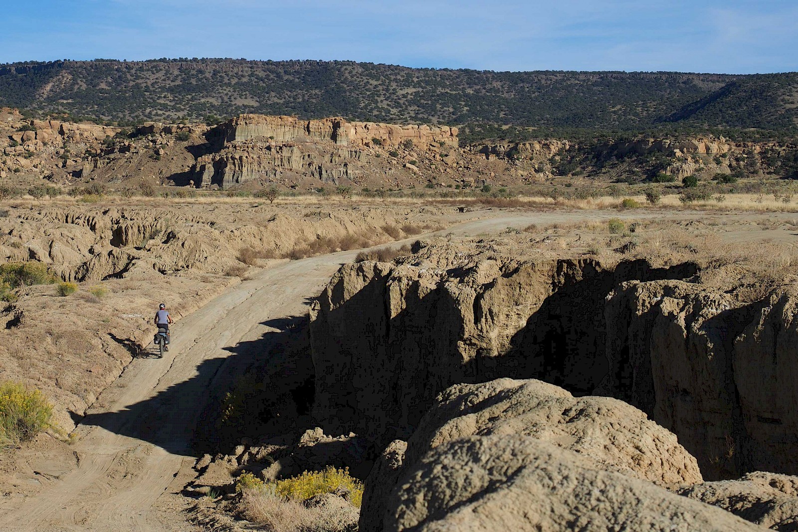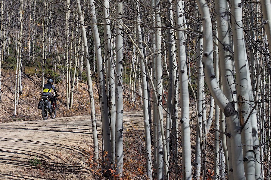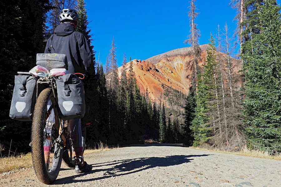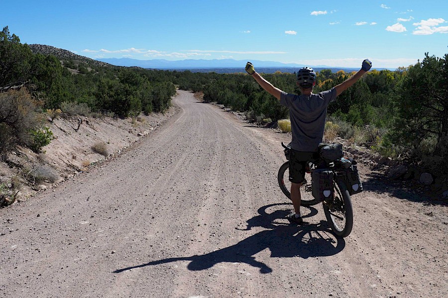 Nach einigen spektakulären Passüberquerungen bei 30 Zentimeter Neuschnee und klirrend kalten Nächten mit gefrorenen Wasserflaschen, stellt sich langsam aber sicher wieder stabileres Wetter ein. Wir erleben einen grandiosen „Goldenen Herbst“ in Colorado und meistern extrem anspruchsvolle und einsame Passagen im Norden New Mexicos. Hier bewähren sich unsere Räder so gut, dass wir manchmal sogar ausgewachsene Geländewägen auf verblockten Felspassagen bergab überholen! „Awesome“, würde ein echter Ami sagen!