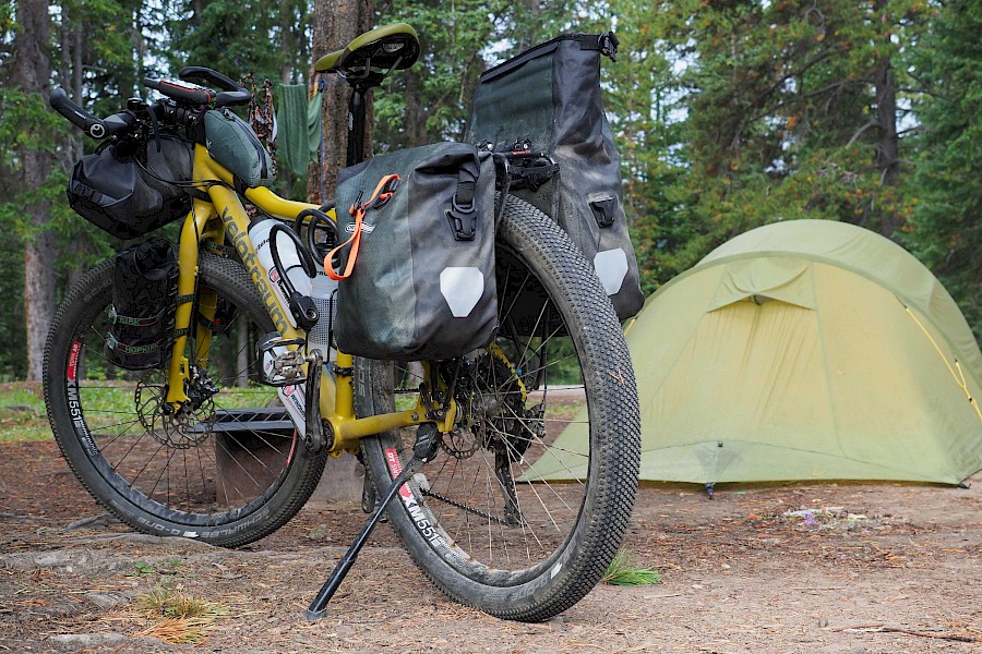 Wir hatten die Qual der Wahl: Klassisches Touren-Setup mit viel Volumen oder puristisches Bikepacking? Mit einem klassischen Packtaschen-Setup wird aus deinem Rad schnell ein träger Lastesel, welcher nur wenig Fahrspaß abseits des Asphalts bietet. Beim Bikepacking bleibt man hingegen leicht und agil, verliert jedoch massiv an Pack-Volumen und Flexibilität. Da wir aber oft für mehrere Tage autark sein mussten, eine recht üppige Fotoausrüstung mit dabei hatten und nicht auf vollwertige Lebensmittel verzichten wollten, entschieden wir uns schlussendlich für eine Hybridlösung: Bikepacking-Taschen von Apidura (Saddle Bag, Lenker-Rolle, Gas Tank), Salsa-Cages mit den dazugehörigen Packsäcken an der Vordergabel, sowie Ortliebs neue „Gravel Pack“ Taschen am hinteren Gepäckträger. Mit 53 Liter Volumen pro Person mussten wir auskommen. Ein Ansporn mehr, nur das Wesentlichste einzupacken!