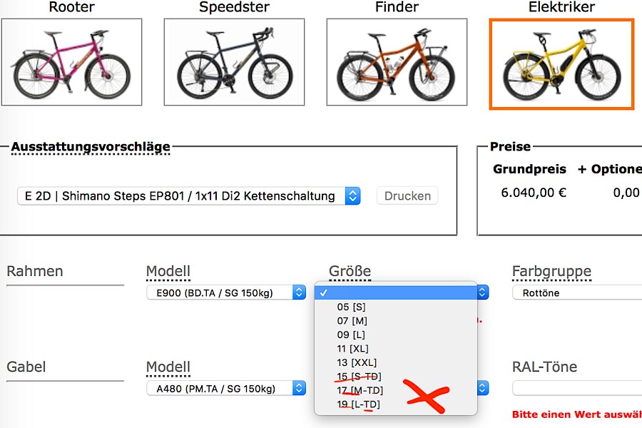 Ihr könnt den TD-Rahmen ab sofort als Größenvariante des E900 im Konfigurator finden und zusammen mit einem Velotraumhändler in eurer Nähe auch gleich die Ausstattung und Farben für euren Traum-Elektriker zusammenstellen. Selbstverständlich erfolgt bei diesem Termin auch die Vermessung und ergonomische Anpassung, sodass nicht nur das Auf- und Absteigen mühelos vonstatten geht, sondern auch das Fahren das reinste Vergnügen bereitet.