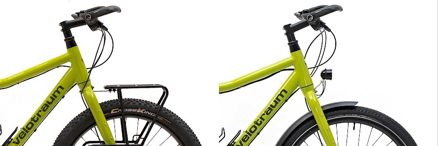 Das kann ich nur bestätigen, ich habe mein Velotraum Konzept VK-10 mit mit voller Reiseausstattung (v/h Gepäckträger, Licht, Schutzbleche) in ein Reisemtb verwandelt, indem ich die 55-559 Schwalbe Mondial gegen 57mm Smart Sam Plus und vorne Continetal Trail King in 60mm gewechselt habe. Die Schutzbleche und den Lowrider habe ich auch abmontiert und vorne Ortlieb Forkpacks verbaut. Ich habe aber noch Spritzschutz angebaut, um zumindest den Sattel und den Steuersatz trocken zu halten. Als kleine Luxus habe ich das Vorderrad gegen eines mit mit 30mm Felgenmaulweite statt 24mm ausgetauscht, was ein besseres Fahrverhalten gab bei geringerem Reifendruck.