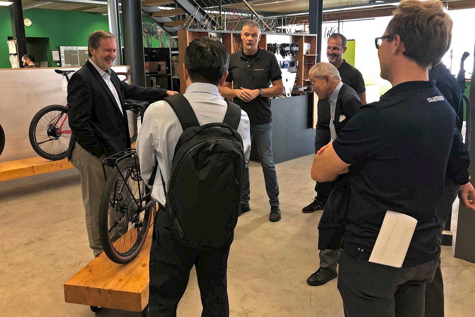 Andreas Binz: Natürlich haben wir die Gelegenheit genutzt, unsere Anliegen vorzubringen. Für die bereits erwähnte Cues-Gruppe arbeiten wir an Lösungen. Weitere zukunftsweisende Themen haben wir mit Shimano und Lange besprochen. Unser Besuch aus Stuttgart und Japan war sehr interessiert an unserem Vermessungskonzept. Es ist eben eine Seltenheit, dass es Fahrradhersteller gibt, die das Fahrrad wirklich an den Kunden anpassen (mehr dazu in einem der nächsten Blogartikel). Wäre der Besuchstermin nicht unter einem eisernen Zeitdiktat gestanden, hätten wir vielleicht noch unseren ersten Velotraum nach Japan verkauft. Unabhängig davon freuen wir uns auf weitere Jahre hervorragender Zusammenarbeit mit den Produkten von Shimano und bedanken uns für den Besuch.