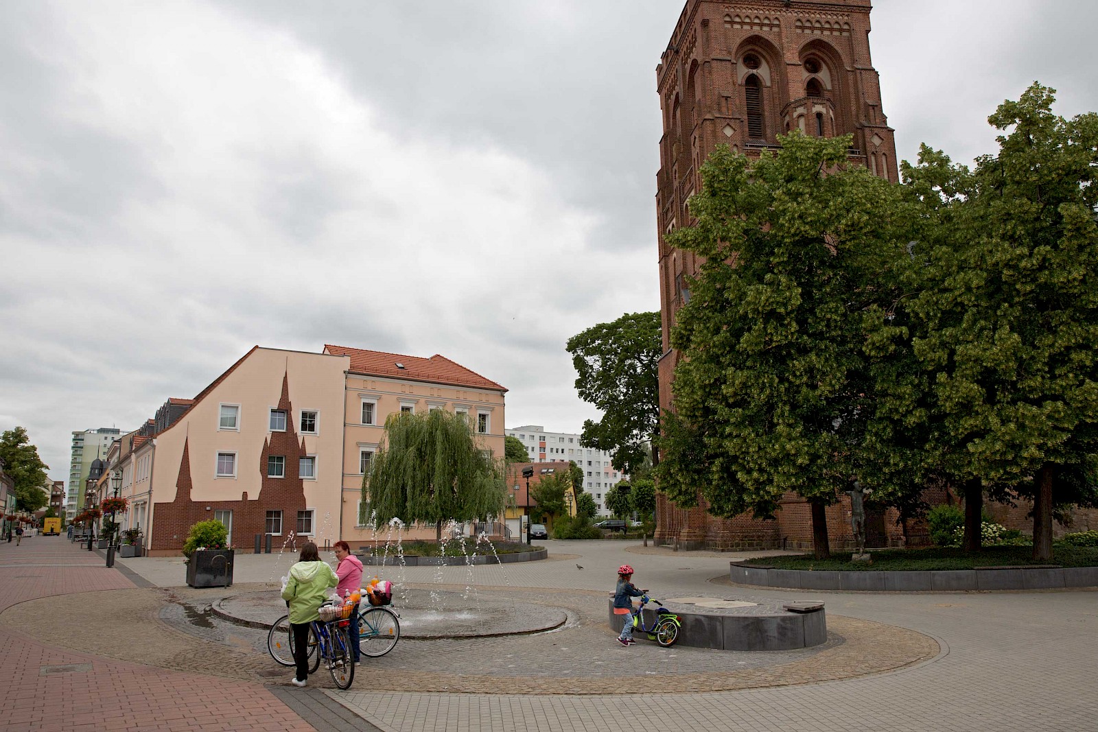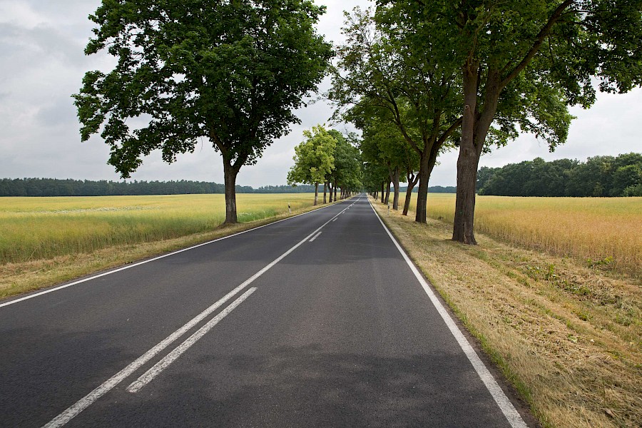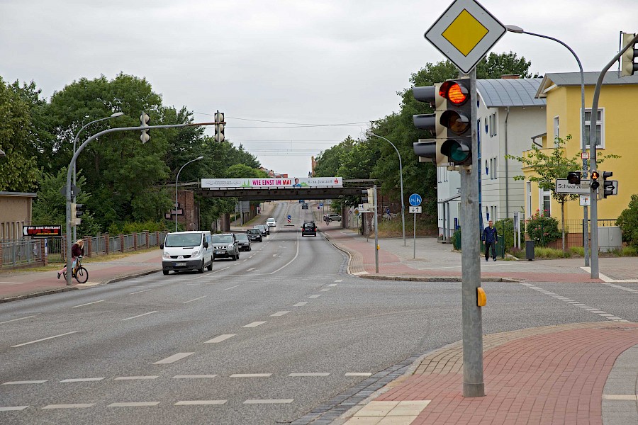 Die letzten 35 km sollten unangenehm und holprig werden. Zirka 15 km Schotterstraße mit Wellblech dazu Nieselregen. Mir reichte es inzwischen, und so bekam die unschöne Streckenvariante über Altstrelitz nach Neustrelitz ihre Längen. Überhaupt, in einem Mittelzentrum wie Neustrelitz wird klar: im »Osten« und »Westen« fährt man in der Provinz Auto, egal wie niederschwellig und banal der Anlass ist. Immerhin, in dieser Hinsicht »ist zusammengewachsen, was zusammen gehört«.