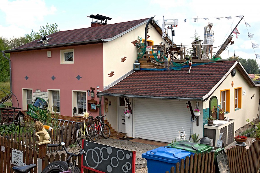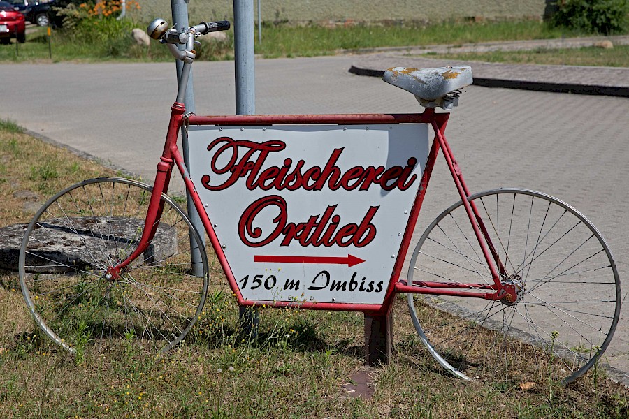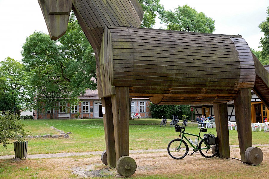 Die Strecke bis Friedrichsfelde – mit dem Heinrich-Schliemann-Museum (Stichwort Troja) – verlief über herrliche, kleine und flott zu fahrende Landstraßen. Unterwegs mehrfach nette Cafés, wie auch hier am Museum. Ich radelte zügig weiter, die Beine und die Strecke machen es möglich. Unterwegs immer wieder das Schöne (meist das vorsozialistische Erbe) und Unvermeidliche (meist das sozialistische Erbe). Immer mehr wird mir klar bzw. kann ich nachvollziehen, dass der Wiederaufbau und das viele Geld, das in den Osten geflossen ist, tatsächlich »alternativlos« war und ist.