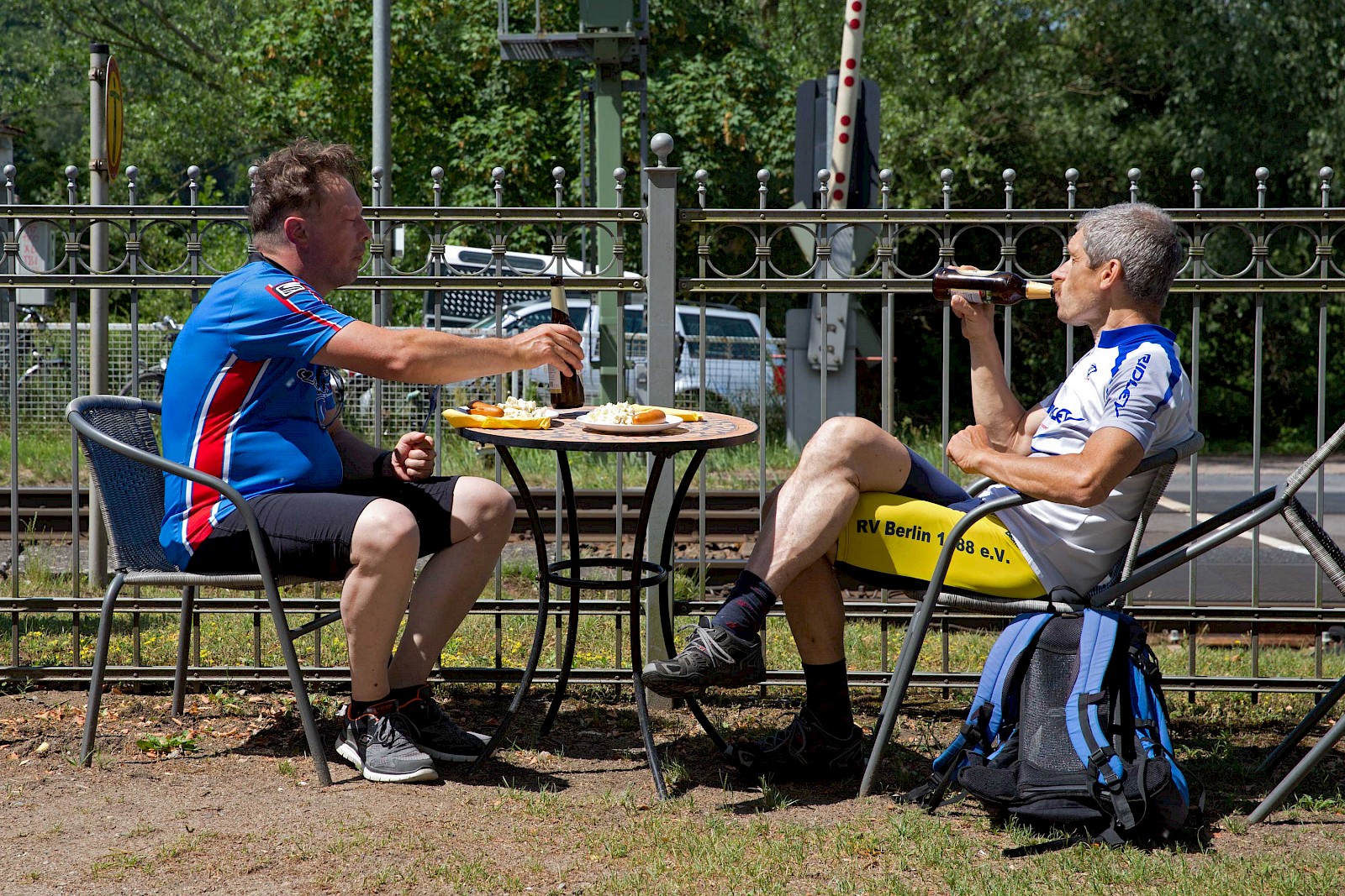 Beim Losradeln meldeten sich dann beide Knie, insbesondere das Rechte. Noch gab ich mich der Illusion hin, das gäbe sich beim Warmfahren – tja, mit 30 war das noch so. Hinter Merkels Heimatstadt Templin geht dann nichts mehr. In der Absicht, das Knie zu entlasten, stimmte die ganze Sitzposition nicht mehr und im unteren Rücken »flog« was raus … Bahn, Bus usw.: Fehlanzeige. Irgendwie war ich dann noch bis Tiefensee zurückgekommen und dann noch bis nach Hause …