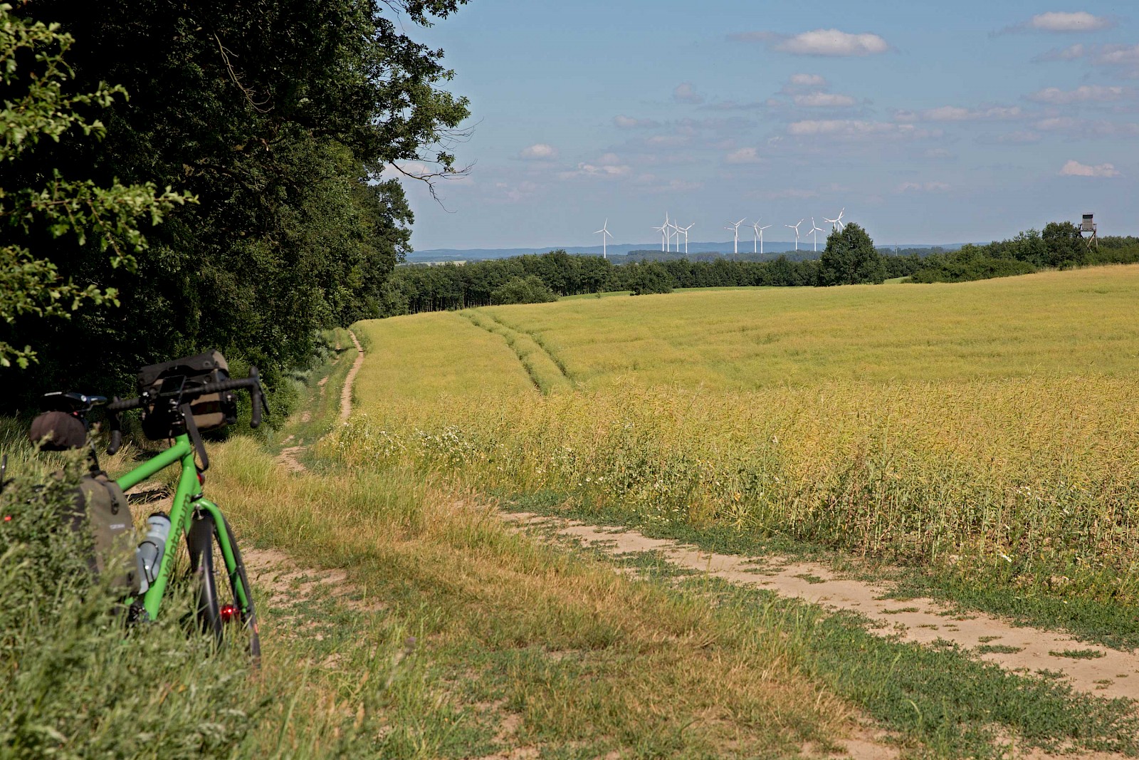 Komisch – jetzt mach ich seit knapp 40 Jahren Radreisen, aber noch immer bin ich nervös und aufgeregt wenn es dann los geht. Nach hektischem Frühstück und Morgentoilette fuhr ich los. Vom Stellplatz für das Firmenmobil waren es noch 20 Kilometer bis zur eigentlichen Radrunde und bis dahin fühlte sich das Radfahren noch nicht gut an. Tja, so langsam sollte ich mich – Jahrgang 61 – daran gewöhnen, dass es von 100 auf Null und umgekehrt nicht mehr so hoppla hopp geht …