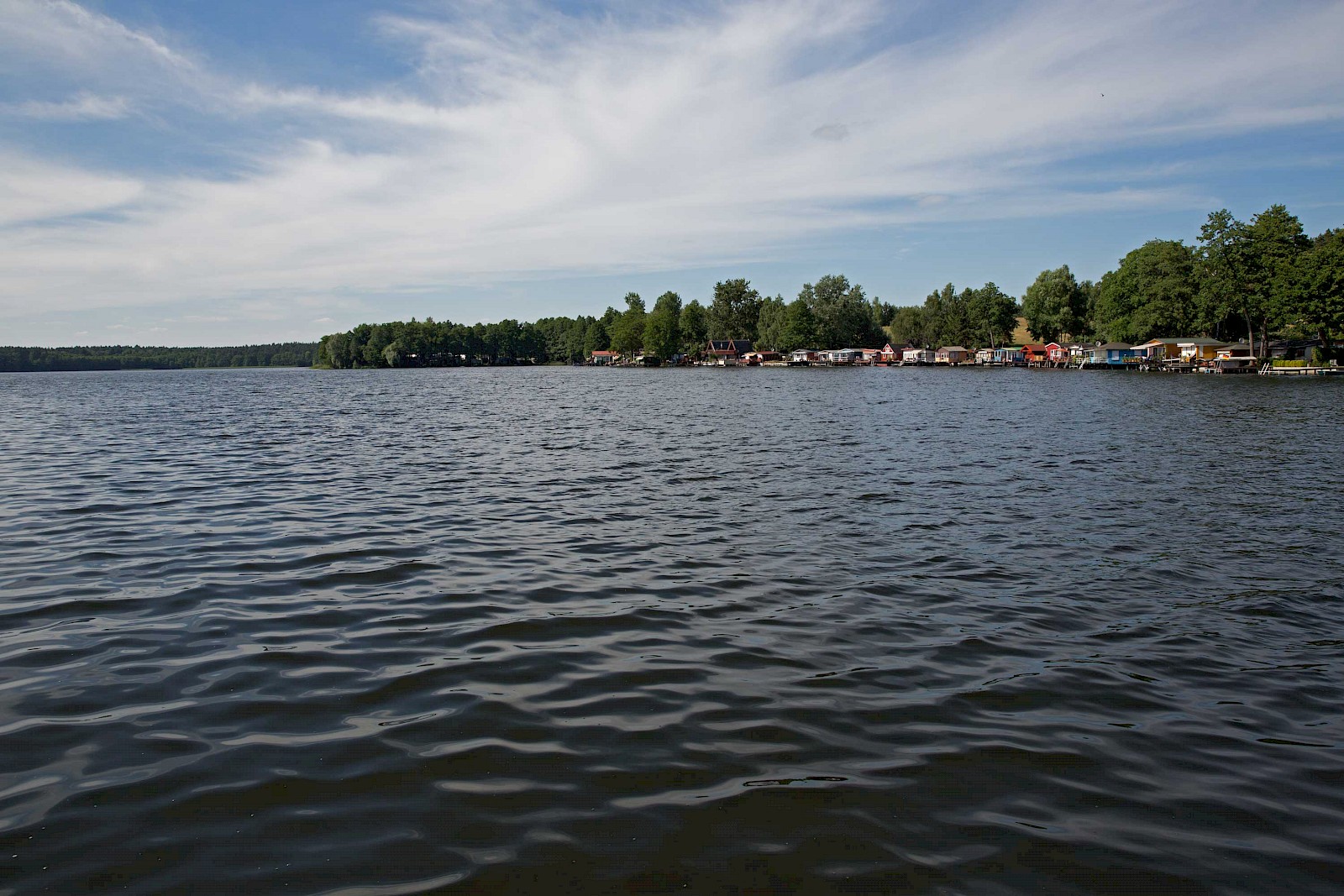 Schon nach dem ersten halben Tag war ich daher froh, mit so einem untypischen »Tourenreifen« unterwegs zu sein und begab mich – mutig geworden – auf Abwege. Wie den vergeblichen Abstecher zum verrammelten Strandbad Wolletzsee. Erst beim Angler-Club gelangte ich für ein Foto überhaupt an das Seeufer – der Rest ist mit Datschen verbaut. Angermünde und mein etwas außerhalb liegendes Hotel waren etwas ernüchternd und konterkarieren den Hotelnamen »Flairhotel«.