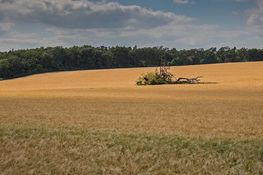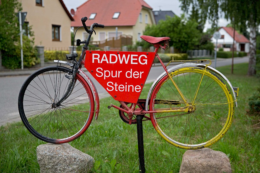 Nach einem guten Frühstück musste ich von Angermünde zunächst wieder auf den Radweg zurück. Erwartet hatte ich eine langweilig-beliebige Transferstrecke, zu meiner Überraschung war es zwischen Angermünde, Herzsprung, Neukünkendorf bis nach Stolpe sehr, sehr schön. Die Wege, die Landschaft, die Vegetation und die skurrilen »Fundstücke« verbinden sich zu einem famosen Ganzen. Den stimmigen Anschluss bildet der kleine Ort Stolpe mit seinem Gras-umwogten Festungsturm samt schöner Aussicht auf das weite Odertal.