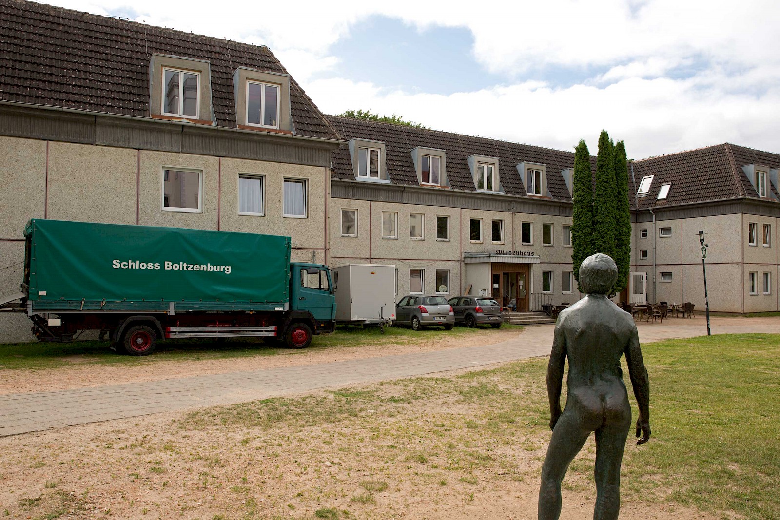 Die Wolken hingen heute noch tiefer und kompakter – schade eigentlich. Ich radelte zunächst noch auf der Uckermark-Route, um dann eine »Abkürzung« zu nehmen, die aber landschaftlich keinen Nachteil bot. Bis nach Boitzenburg und seinem imposanten Schloss zog sich die Strecke dann etwas, leider hatte die vielversprechende Gutsbäckerei noch geschlossen. Das mächtige Schloss, so mitten im Nirgendwo, ist im übrigen kein Luxusressort oder gar Seniorenresidenz, sondern überwiegend ein Jugendgruppen-Hotel!