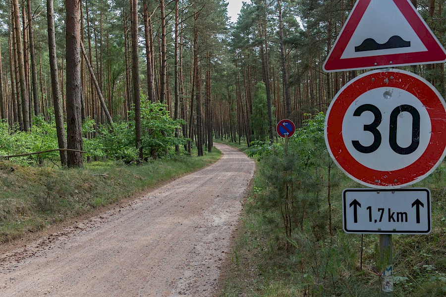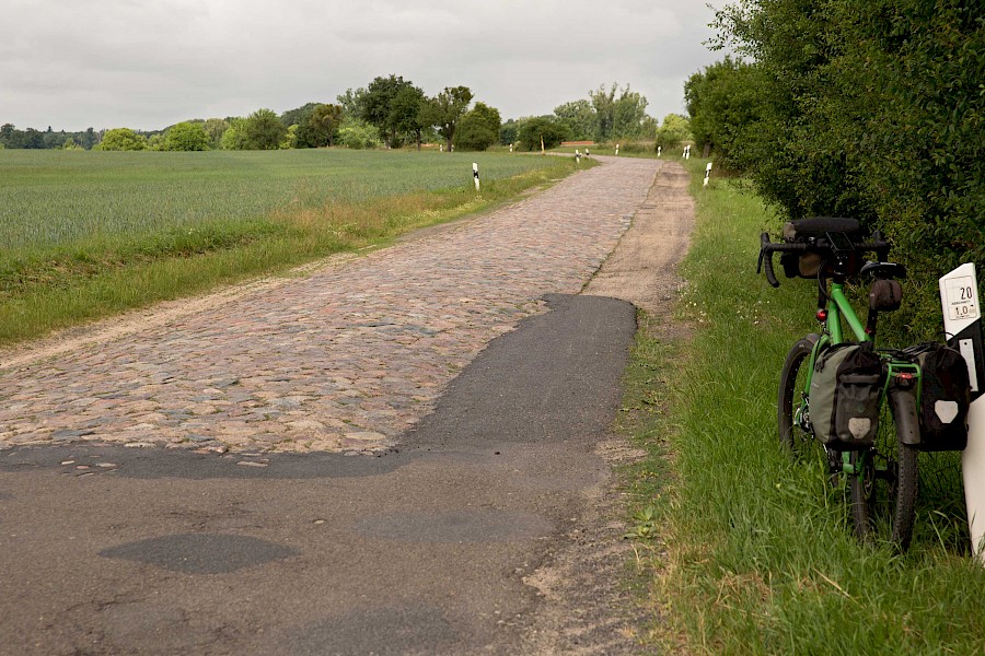 Nach Chorin wurde die Streckenführung nochmals abenteuerlicher: insbesondere durch die teilweise recht zerwühlten Forstwege, auf denen man wegen der Stechviecher bloß nicht zu langsam werden durfte. Ebenfalls mit von der Partie: viel Kopfsteinpflaster – wahrscheinlich Denkmalschutz – und so wurde ich trotz breiter Reifen ordenlich durchgerüttelt, da ich zu bequem war, den Luftdruck zu reduzieren.