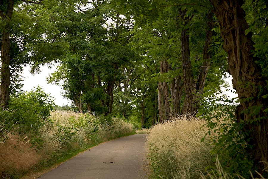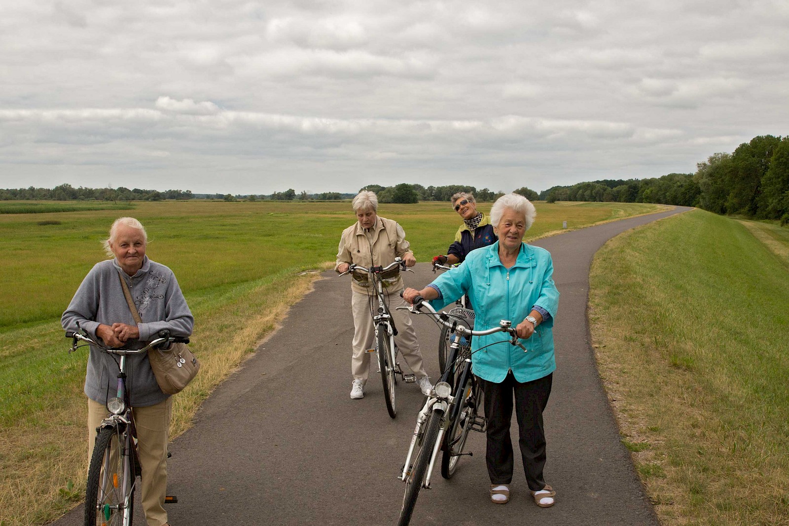 Bis nach Schwedt ging es mit Rückenwind immer auf dem Oder-Damm dahin, mitten durch ein riesengroßes Naturreservat, dem Nationalpark Unteres Odertal. Die vier Damen, mit denen ich während eines Fotostops ins Gespräch kam, erzählten mir, dass im Winter hier alles unter Wasser steht, da die ganze Fläche zwischen Kanal und Oder geflutet wird. Jetzt im Sommer unvorstellbar.