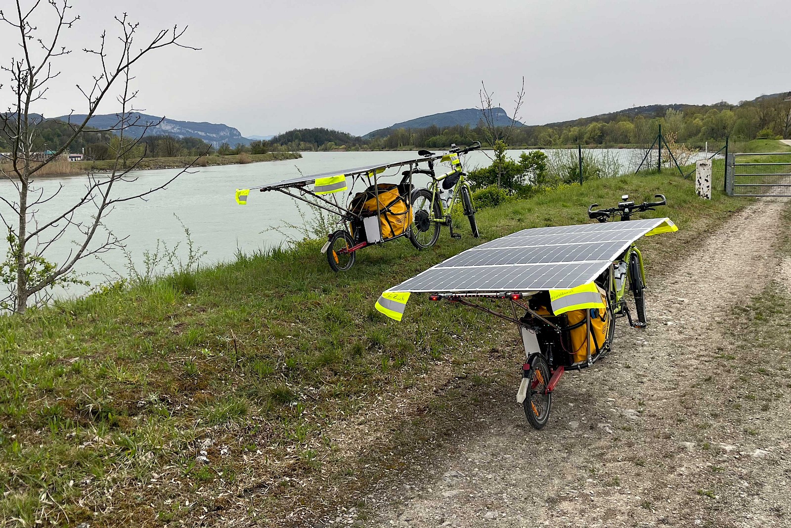 Wir sind zwei Studenten (Kaspar und Johannes) der ETH Zürich, die nächstes Semester ihr Studium abschließen werden. Wir sind beide passionierte Rennradfahrer und haben uns vorgenommen, nach unserem Abschluss in einem halben Jahr nicht weniger als einmal um die Welt zu radeln. Dafür bauen wir uns zwei durch Elektromotoren unterstützte Fahrräder. Der Motor soll dabei seine Energie aus Solarzellen beziehen, die an einem mitgeführten Anhänger installiert sind.
