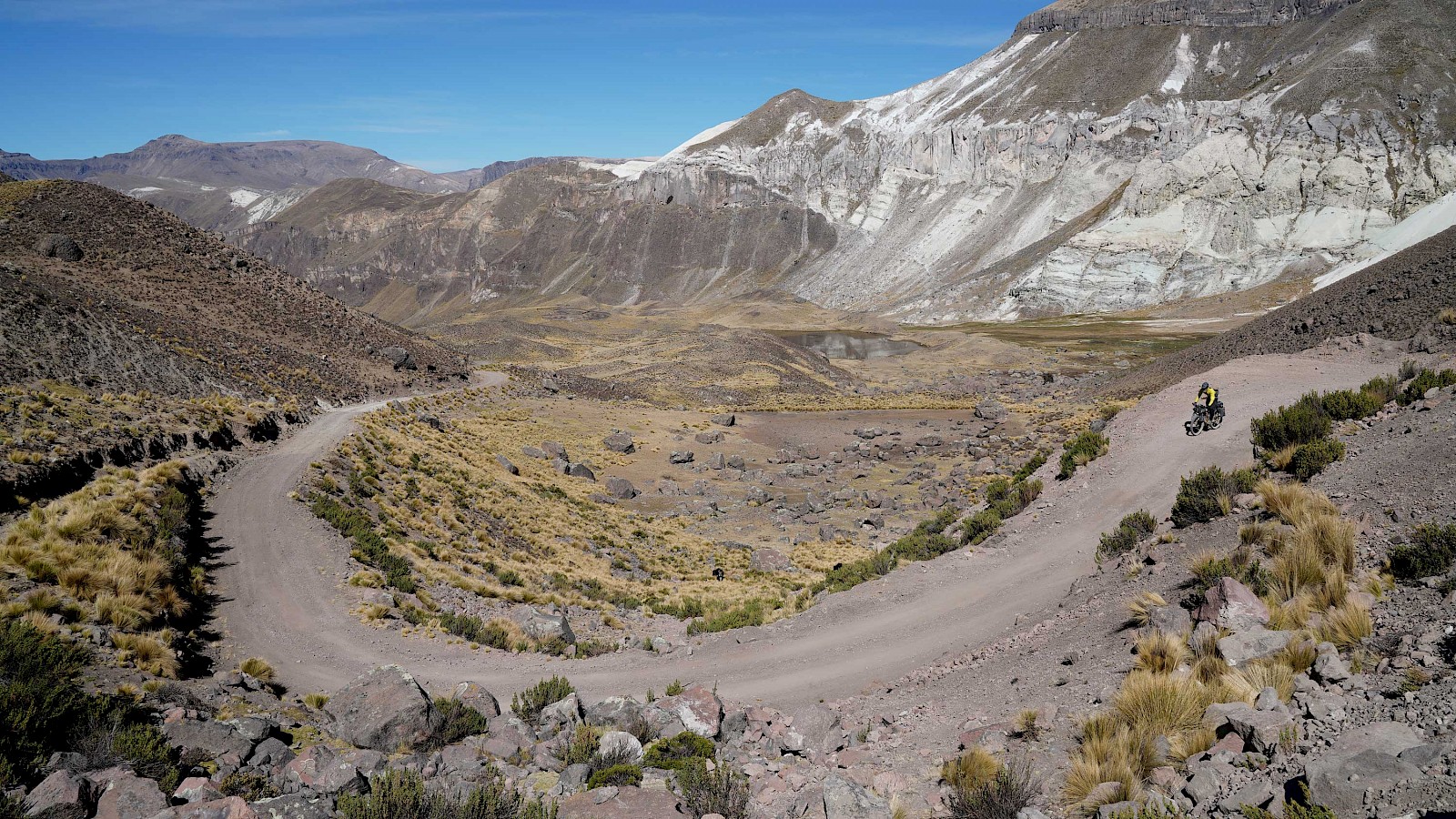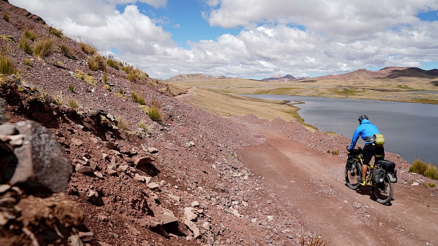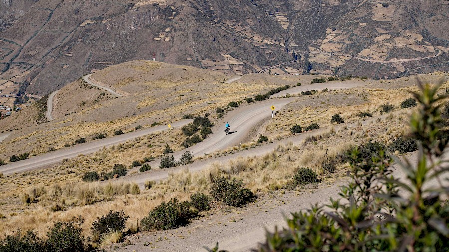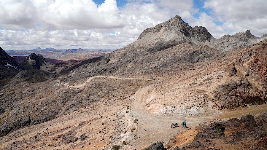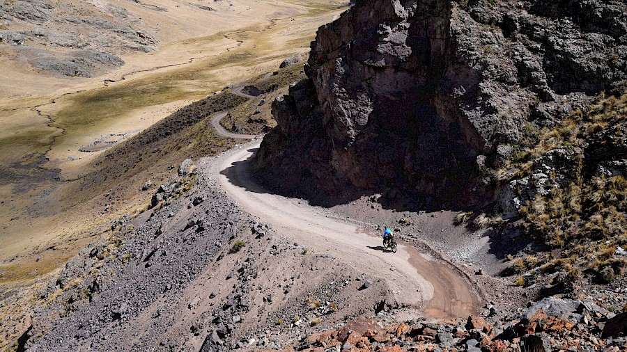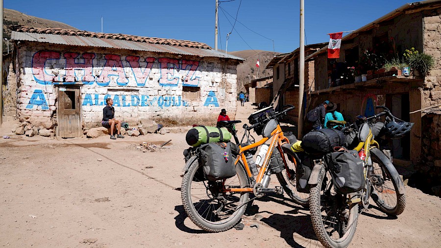 Die Route bringt uns als „Einstieg“ zu großen Teilen entlang der „Peru Divide“ bis in die Stadt Arequipa. Diese spektakuläre Strecke wurde von Neil und Harriet Pike (andesbybike.com) zusammengestellt und führt auf staubigen Schotterpisten und über viele hohe Pässe entlang der transkontinentalen Wasserscheide der Anden. „El Silencio“ – „Die Stille“, so nennen die Peruaner jene entlegenen Hochgebirgslandschaften, in denen wir die nächsten Wochen unterwegs sein werden. Es ist eine weltentrückte, raue Gegend mit einer unbeschreiblichen Schönheit, die uns alles abfordert. Die Tage sind geprägt von teils miserablen Pisten und unzähligen Pässen, die uns in Höhen von knapp 5.000 Meter bringen. Nur selten fällt unser Höhenmesser unter die 4.000 Meter-Marke, eine perfekte Akklimatisation ist hier Pflicht. Wir haben uns langsam an die extreme Höhe herangetastet und sind gut angepasst. Nichtsdestotrotz kommen wir nur langsam voran, unsere Kilometerbilanz ist bescheiden. Trotz der Strapazen genießen wir die einsamen Etappen und grandiosen Lagerplätze, aber auch die kleinen, unscheinbaren Dörfer und Städte, durch die wir radeln. Nichts, was man üblicherweise auf der Must-See-Liste eines Peru-Reisenden findet. Und genau das reizt uns. Wir erleben das Land so, wie es ist. Unverblümt, ohne Maske und ohne inszenierter Idylle. Dafür mit sehr viel Authentizität und mit voller Wucht.