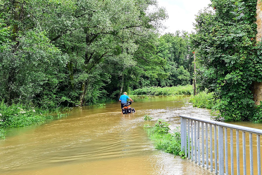 Mir gefällt vor allem das Foto mit dem überfluteten Weg! Hier muss velotraum dringend nachbessern und liefern, denn der FINDER kommt da an seine Grenzen- wie wäre es mit einem Modell namens DIVER oder SWIMMY oder FLYER (ok, FLYER gibts ja schon bei der Konkurrenz).