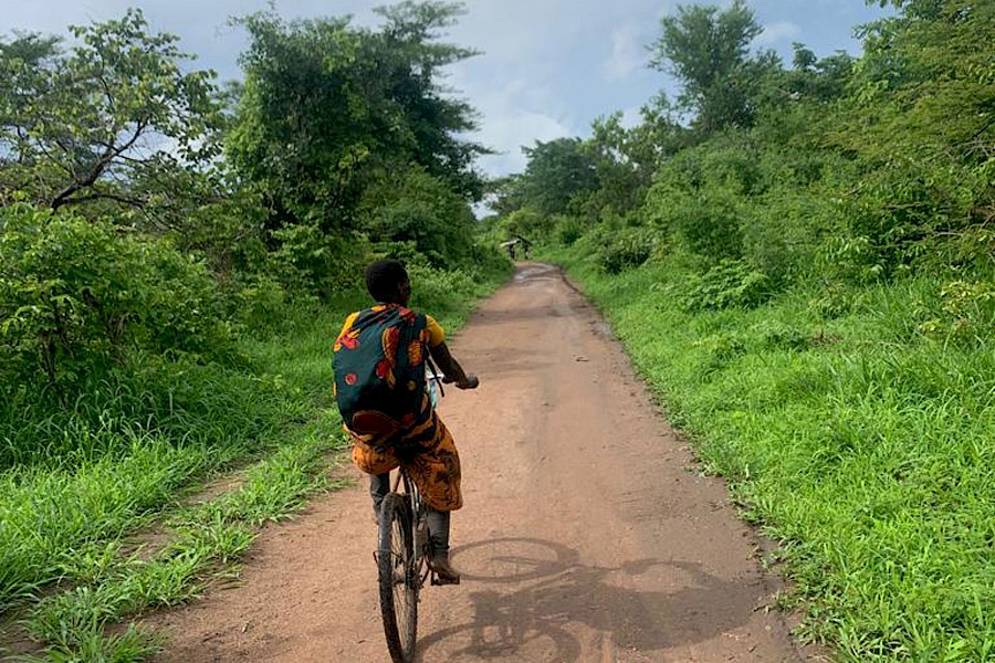 Im bereits erwähnten endlosen Auf und Ab ging es dann im zweiten Teil der Strecke zwischen kleinen Dörfern, unter den ungläubigen Blicken und erfreuten Lachern der Einheimischen und zuweilen in Begleitung des ein oder anderen Radlers zwischen uralten Baobabs dahin und wir durften lernen, dass die zwar sehr robusten jedoch minimalistisch ausgestatteten Räder der Locals mangels Gangschaltung meist bergauf geschoben, oben nicht selten aufgepumpt und anschließend in halsbrecherischem Tempo und blindem Vertrauen in die Rücktrittbremse bergab gefahren werden. Da loben wir uns die beiden unabhängig voneinander wirkenden Hydrauliksysteme, die wir mit je einem Finger verlässlich unter Kontrolle haben.