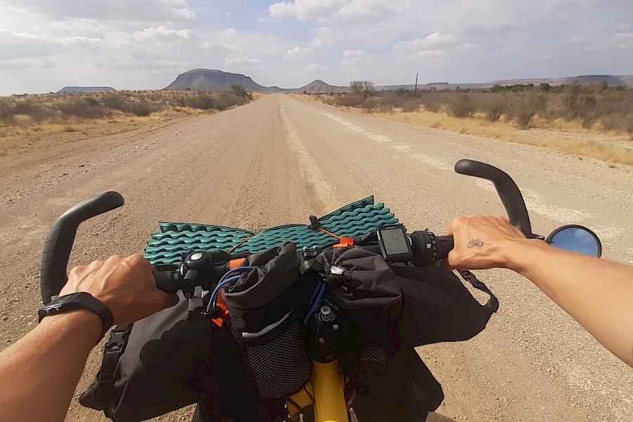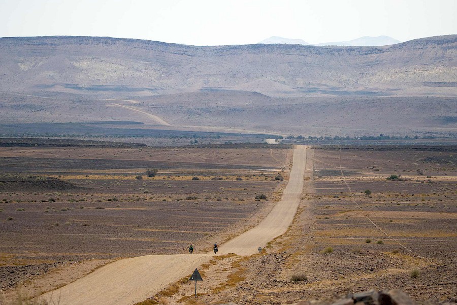Namibia, das war Sand, Staub und Hitze in allen Farben und Formen. Das Radeln durch unendliche Weiten, neben uns hergaloppierende Oryx- und Springbockherden, zum Abendessen vorbeischauende Bergzebras, jede Menge Sterne, Sonnenauf- und -untergänge und herzerwärmende Begegnungen mit empathischen Touristen wie auch Einheimischen haben uns im vergangenen Monat gezeigt, warum sich Radreisen lohnt. Die von einem Tag auf den anderen in die Höhe schießenden Tagestemperaturen haben uns und eine von zwei Pinions zwar ordentlich zum Schwitzen gebracht – im Gegensatz zu unserem anhaltenden Flüssigkeitsverlust blieb es bei der Schaltung aber lediglich bei ein paar unbedenklichen Tropfen Öl.