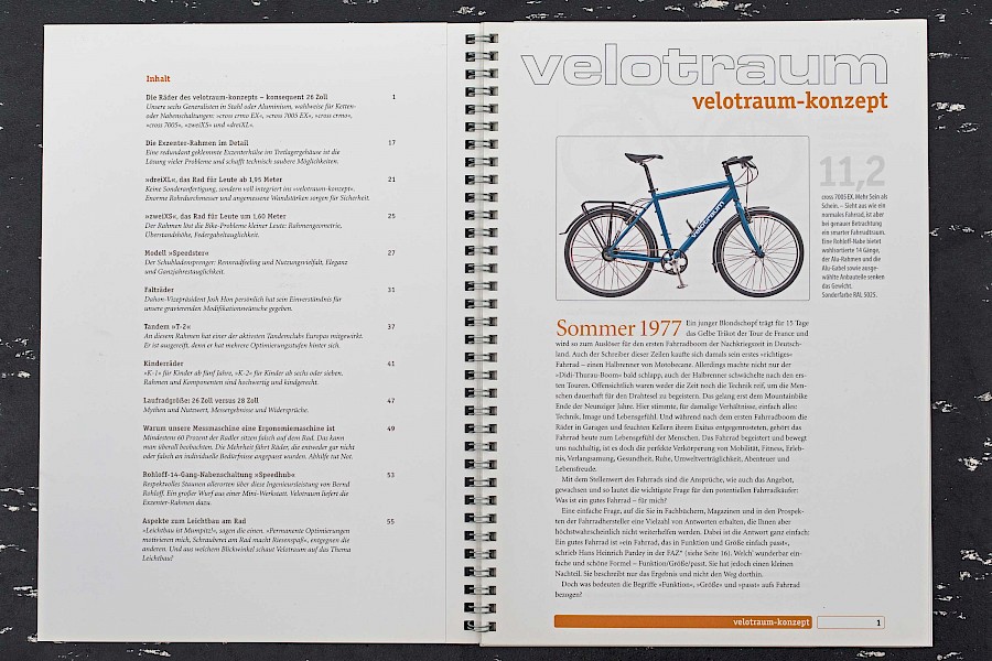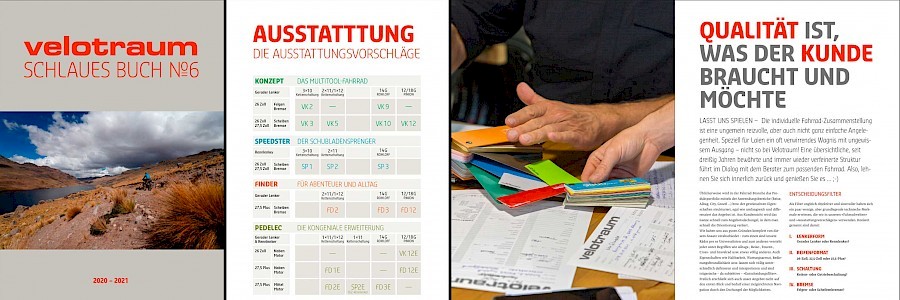Was anfangs eine Notlösung war – Fusion aus Buch und Ausstattungslisten –, entwickelte sich über die Jahre zum passenden Goldstandard, zumindest für Velotraum. Denn, so unser Selbstverständnis: Facettenreiche Produkte gehören anständig erklärt. Mindestens genau so wichtig: Transparenz hinsichtlich der technischen Fakten und Preisgestaltung. Ein gedruckter »Katalog« ist daher kein nostalgischer Anachronismus, sondern ein besonderer Service und ein adäquates Medium. Apropos Medium: Speziell bei komplexen Themen hat das Lesen auf Papier unschlagbare Vorteile, dass haben nicht zuletzt 130 Leseforscher in der Stavanger-Erklärung bestätigt.