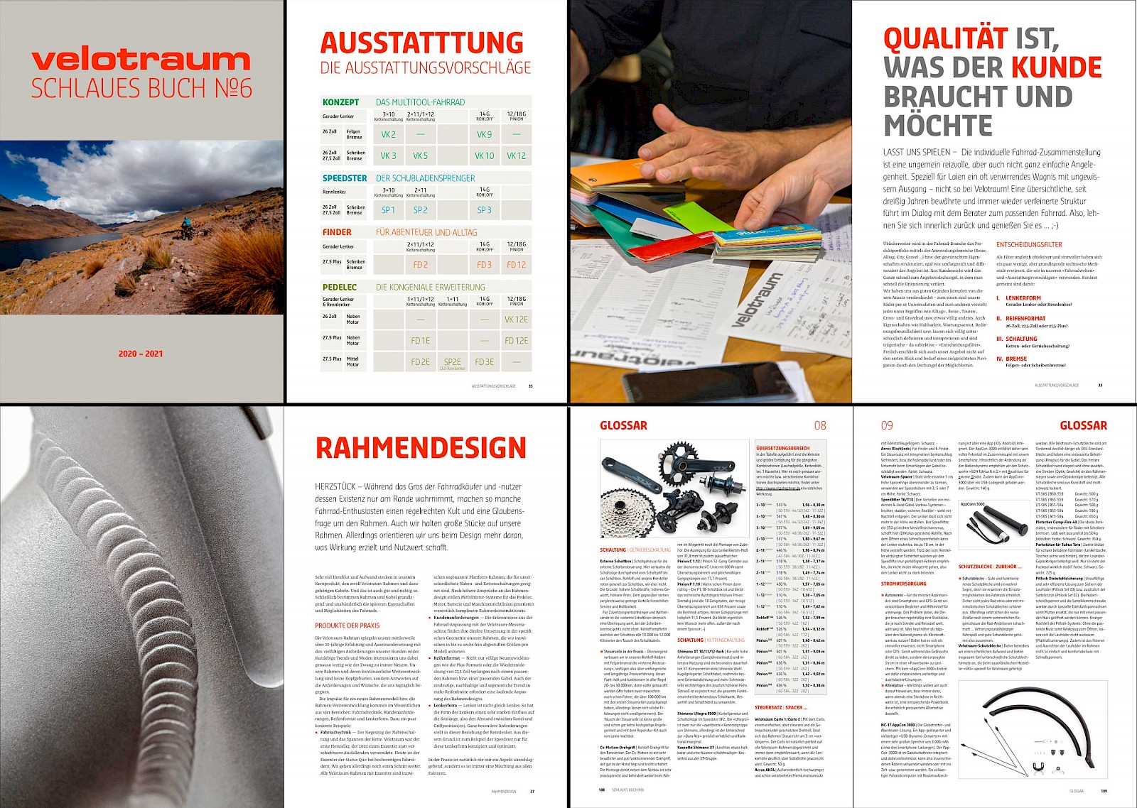 Auch wenn auf den ersten Blick alles vertraut erscheint, wir haben die »№6 « rundherum aktualisiert und etwas erweitert – konkret: Aus 100 Seiten wurden 112. Dabei haben wir uns zum Ziel gesetzt, Bewährtes beizubehalten, Bekanntes zu verbessern und mit neuen Inhalten weitere Velotraum-Aspekte zu beleuchten.