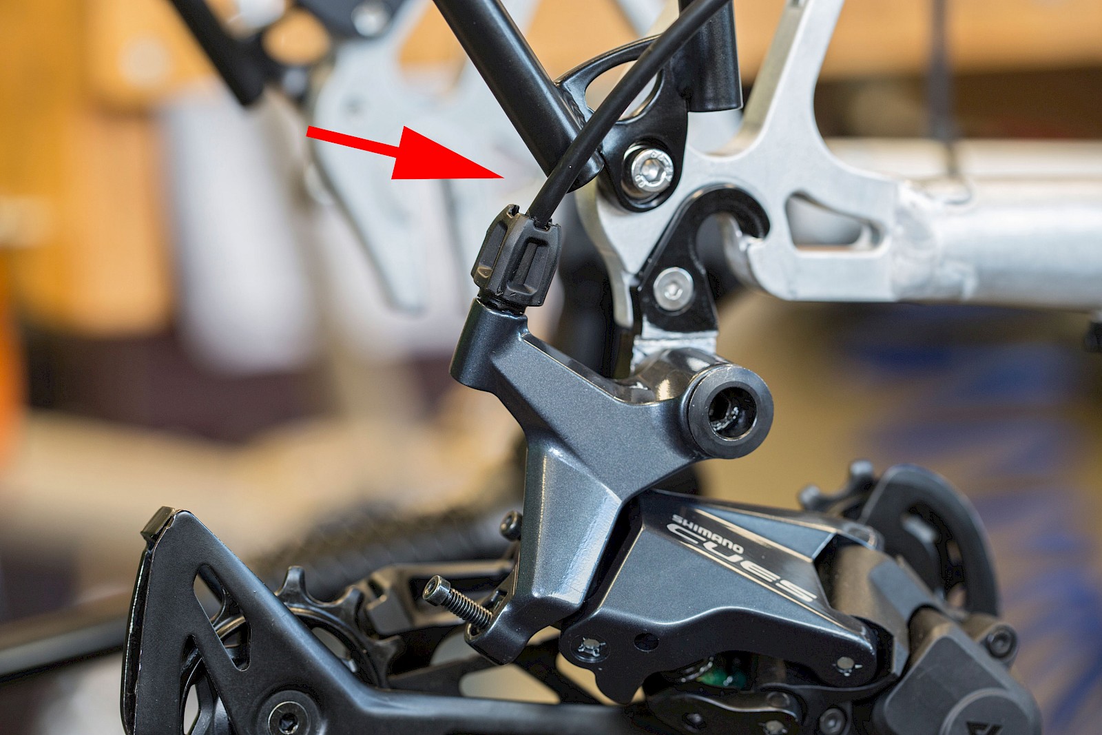 Bei einem ersten Funktionstest passierte dann etwas, was wir schon lange nicht mehr bei neuen Shimano-Komponenten erlebt hatten: Die Kette kletterte nicht auf das größte Ritzel. Was mit einem XT-Schaltwerk spielend vonstatten ging, wollte bei der Cues einfach nicht gelingen. Die Ursache: Shimano hat in den letzten Jahren immer mal wieder die Anforderungen an die Geometrie der Schaltaugen geändert. Die Information darüber finden sich irgendwo in den hunderte Seiten umfassenden Spezifikationslisten und in einer der zig tausend Mails mit denen Shimano seinen »Partner« bombardiert.